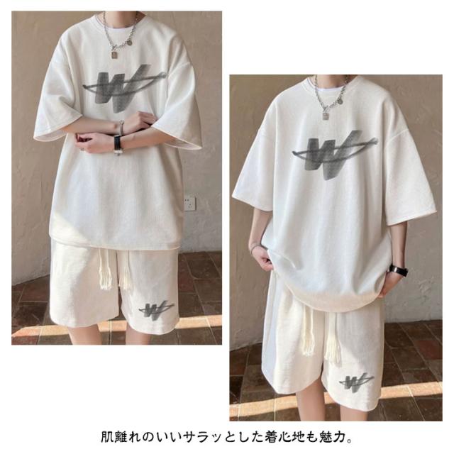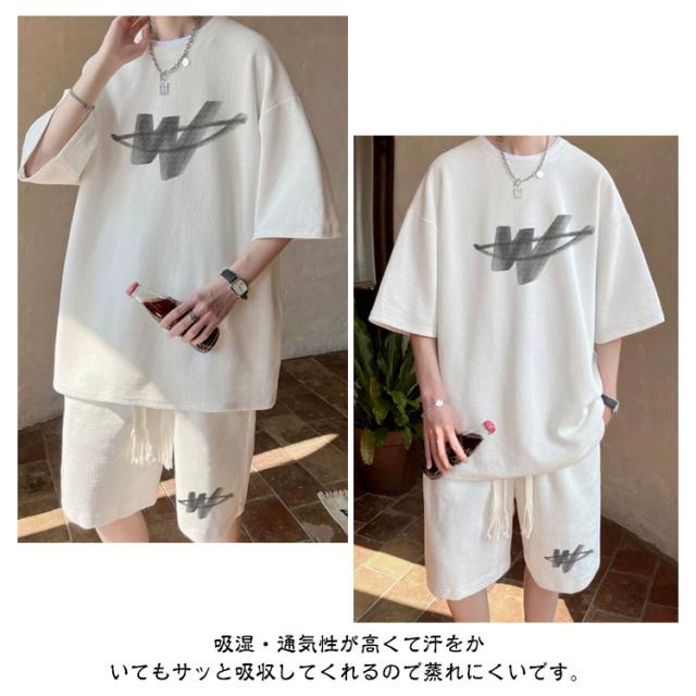 メンズ 送料無料 サマースーツ ショートパンツ 半袖Tシャツ セットアップ セットアップ ハーフパンツ ワッフル編み カジュアル ガウチョパンツ ルームウェア ワイドパンツ ゆったり 通気性 スポーツウェア ショーツ お兄系 パジャマ 春 夏用 ランニング ウォーキング