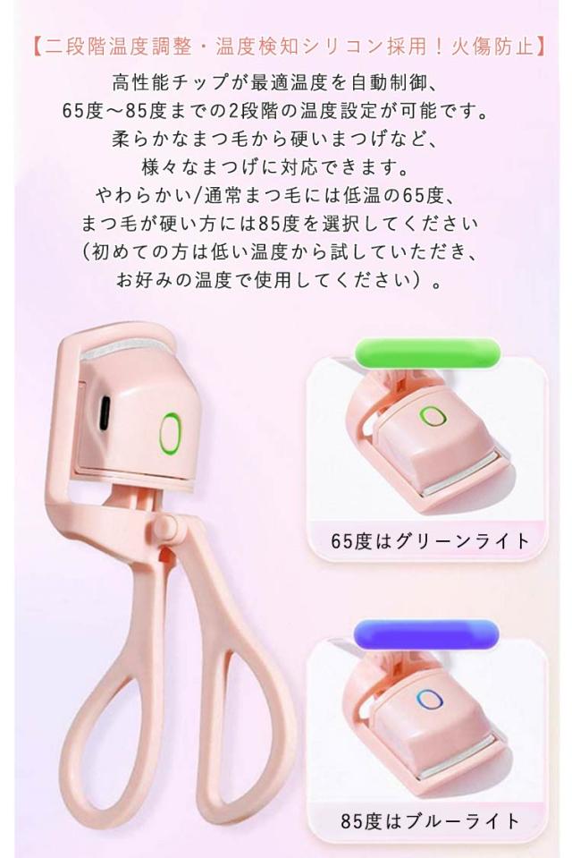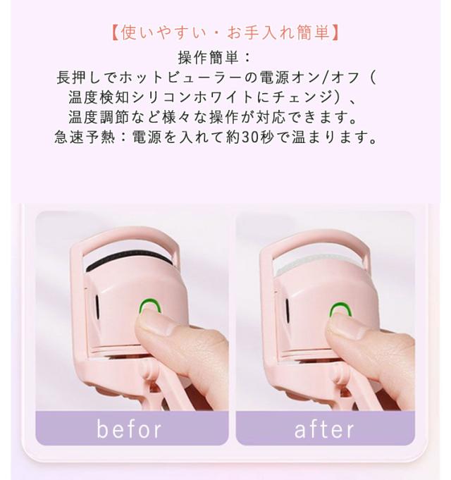 ホットビューラー ビューラー 2段階温度 まつげカーラー まつ毛カーラー 温度検知 USB充電式 アイラッシュカーラー まつげ ホット ビューラー 快速予熱 カール 火傷防止