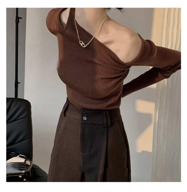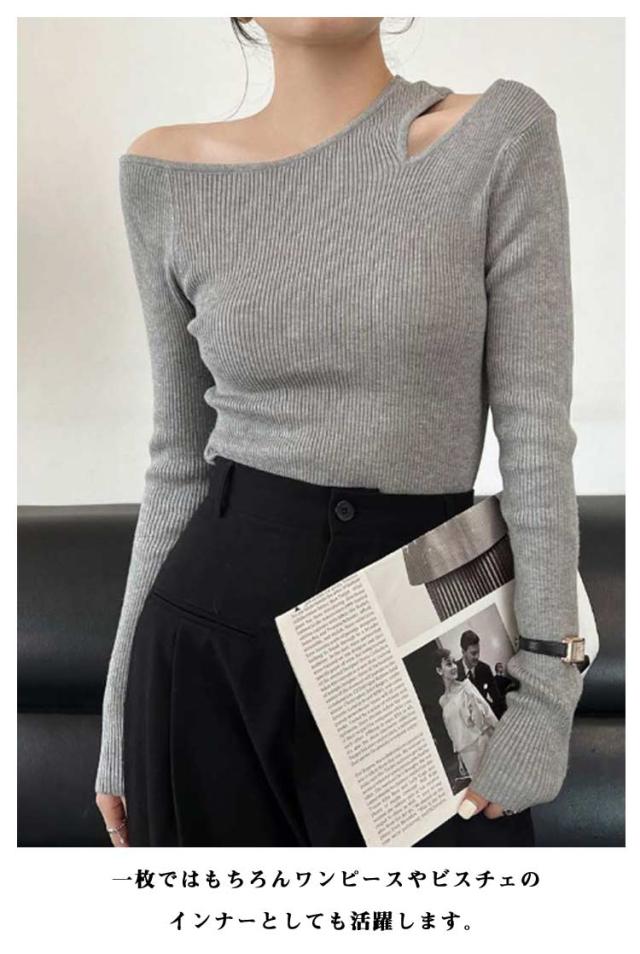 ニット ニット トップス レディース オフショル ニットプルオーバー オフショルダー 長袖 シンプル ワンショルダー セーター 春秋 カットソー 細見え 大人可愛い ニットソー おしゃれ カジュアル フェミニン 春 秋 冬