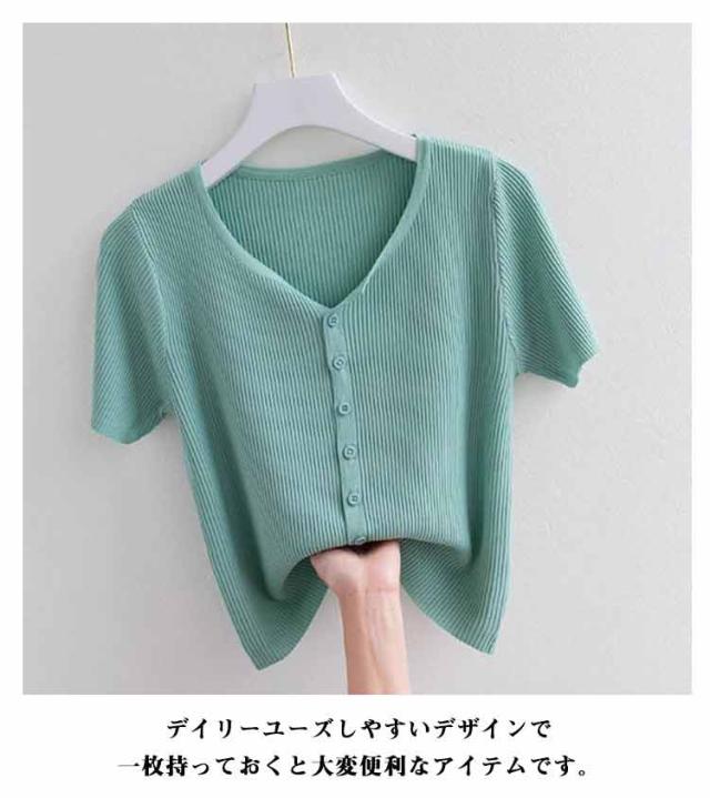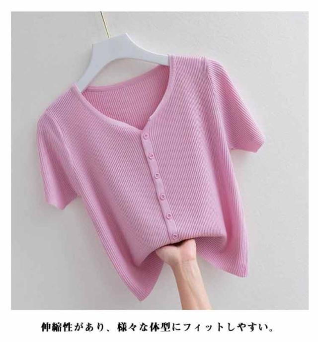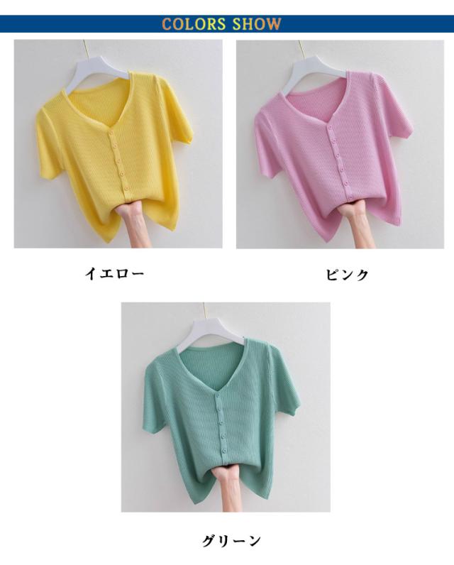 トップス カットソー 通気性 サマーニット 接触冷感 伸縮性 半袖 前開き Vネック カーディガン 涼しい レディース 薄手 ひんやり 柔らかい tシャツ 半袖 ゆったり 体型カバー インナー 通勤