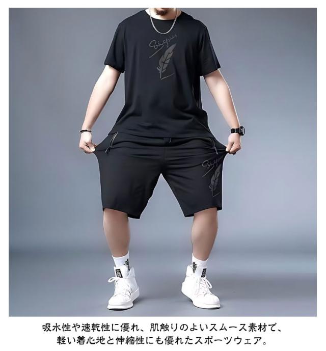 ジャージ セットアップ 上下 ハーフパンツ メンズ レディース スポーツ 無地 半袖 Tシャツ XL-8XL XL-8XL 上下セット ランニング トレーニング ジョギング ルームウェア ダンス テニスウェア ゴルフウェア ルームウェア