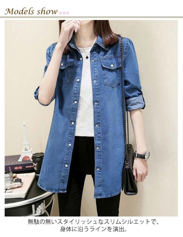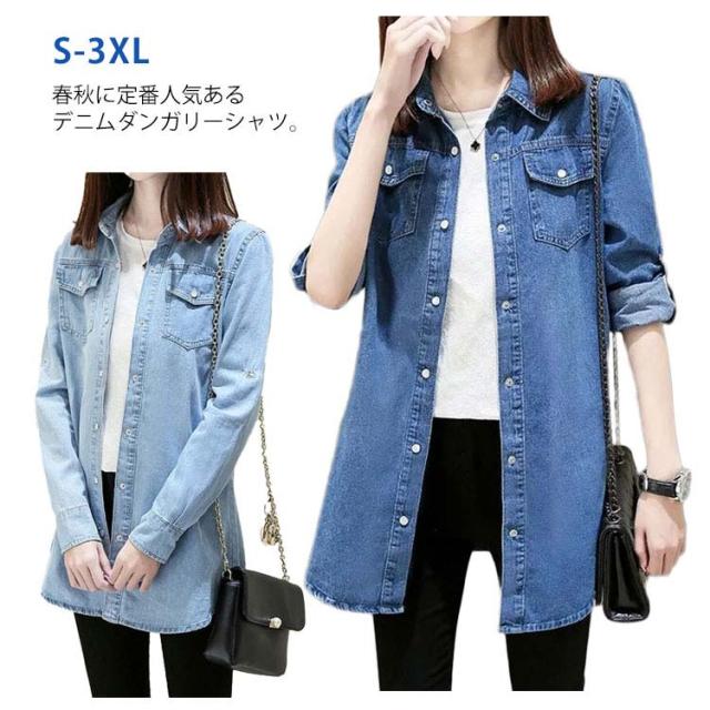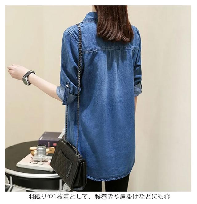 おしゃれ デニムシャツ ロングシャツ ダンガリーシャツ ロング 前開き レディース カジュアル トップス 春服 大人 シャツ ブラウス デニムブラウス デニム ライトアウター ロールアップ 可愛い 秋服 ゆったり 無地 シンプル デニムシャツ お出かけ 通勤 通学