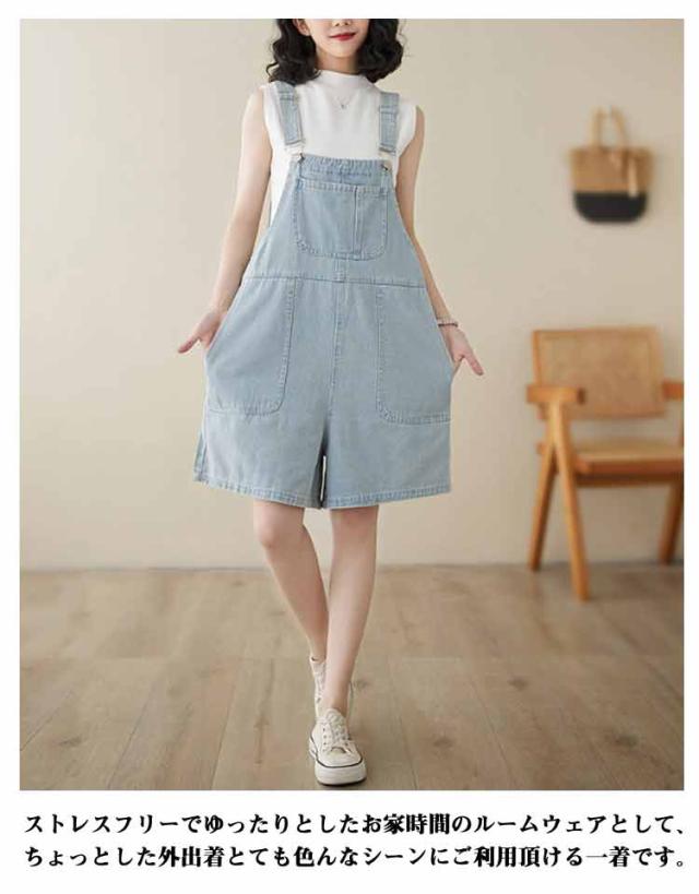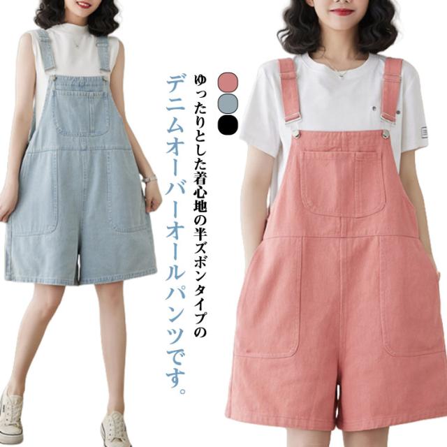 膝上 レディース レディース ゆったり ハーフパンツ ショートパンツ デニムサロペット パンツ 夏パンツ 女子 短パン 夏 かわいい ワイドパンツ 女性 女の子 お洒落