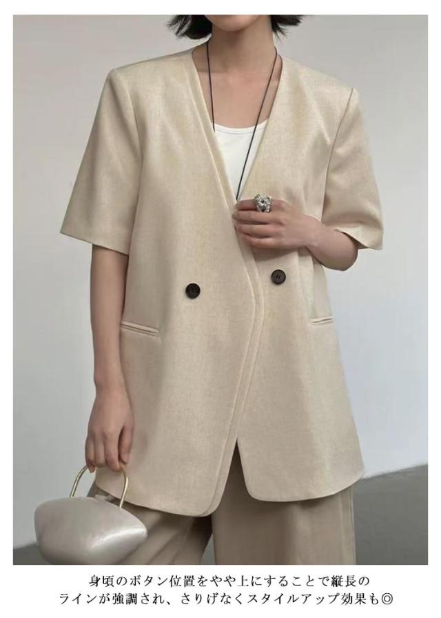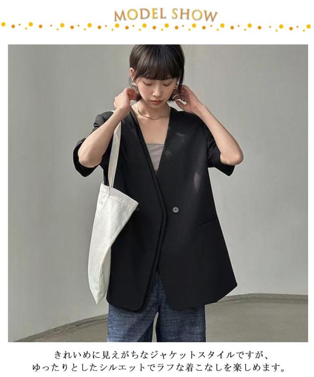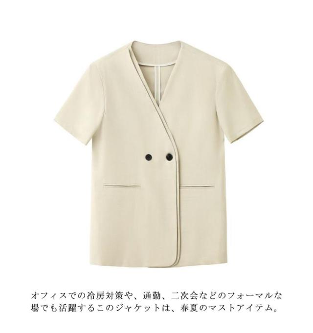 サマージャケット カジュアル レディース ノーカラージャケット 半袖 シャツジャケット 女性 ジャケット ライトアウター 日焼け対策 冷房対策 OL ゆったり オフィス カーディガン 通勤 ノーカラージャケット 大人可愛い 春夏 サマースーツ