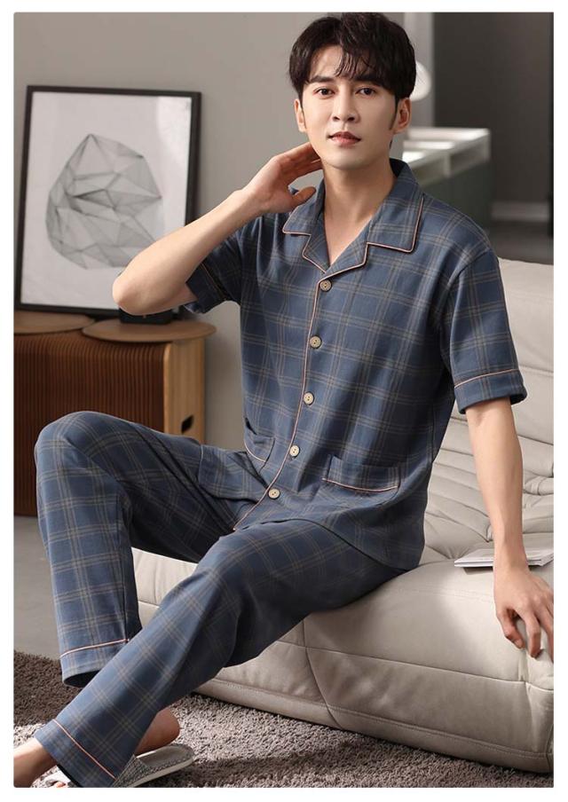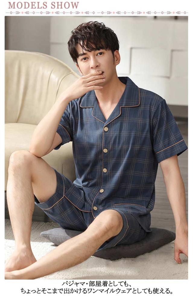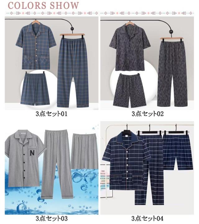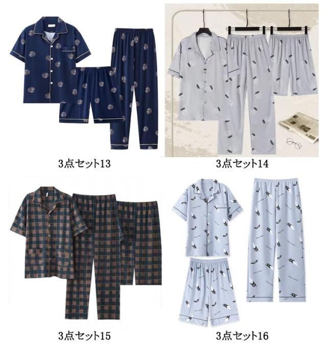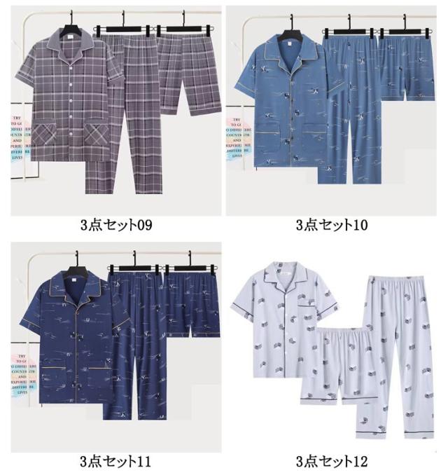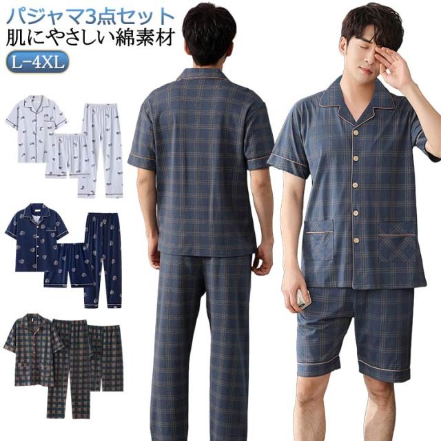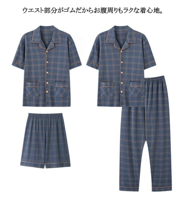 涼しい パジャマ 半袖 男性用 3点セット 前開き メンズ ハーフパンツ 部屋着 綿 長ズボン リラックス 男性用 ルームウェア 上下 チェック柄 薄手 涼しい 入院 紳士 寝間着 セットアップ 父の日 敬老の日 ギフト 夏用