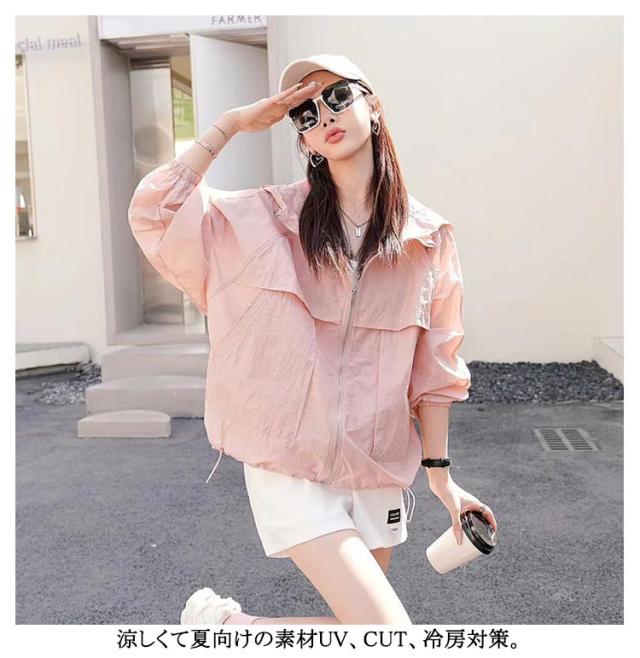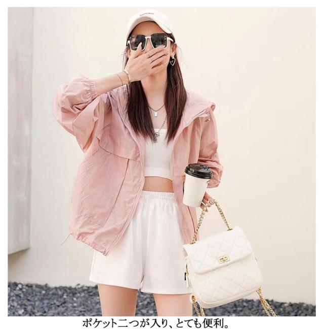 | シンプルだけどトレンド感あるデザインブルゾンです。 薄手で軽く持ち運びしやすい、まるで着ていないかのような着心地。 紫外線が強い時期のUV対策として、しっかりとしてくれる! 通気性に抜群の素材で、肌触りが良い、上品でエレガントな印象。 軽くて通気性に優れて、お肌に優しい、夏にオススメの涼しい素材! フード付き、顔の日焼け対策もバッチリ! ポケット二つが入り、とても便利。 涼しくて夏向けの素材UV、CUT、冷房対策。 | |