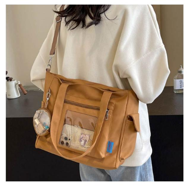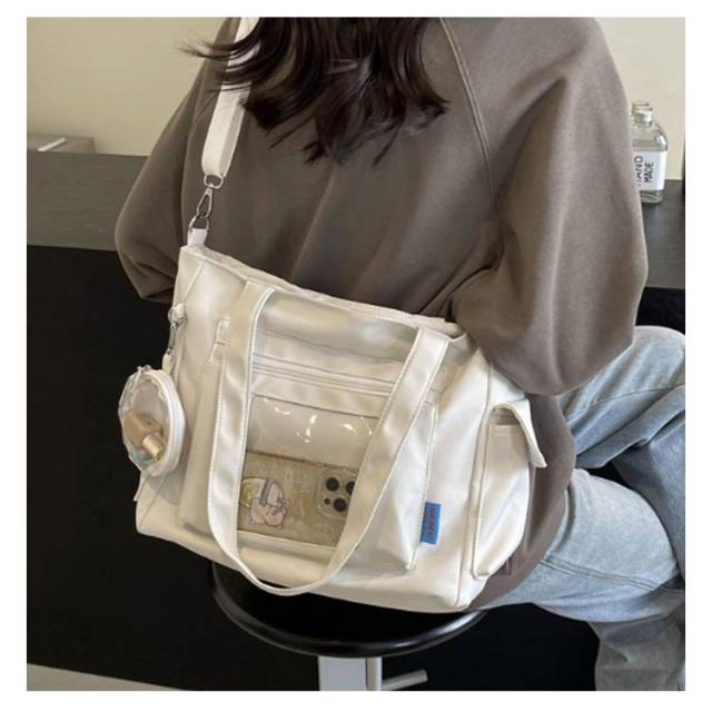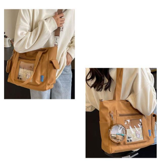 通勤 トートバッグ バッグ ショルダーバッグ キャンバス 大容量 A4 痛バッグ 肩掛け 透明バッグ 痛バッグ バッグ スクール 痛バ トート ファスナー 通学 2way 旅行 オタ活 推し活 ヲタ活 多機能 鞄 カバン レディース