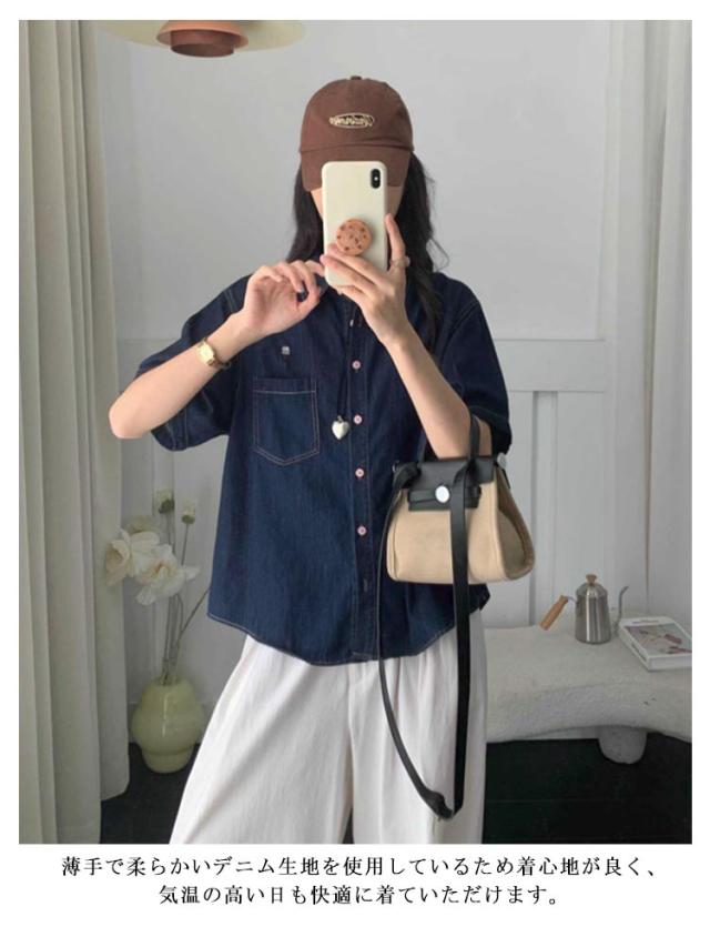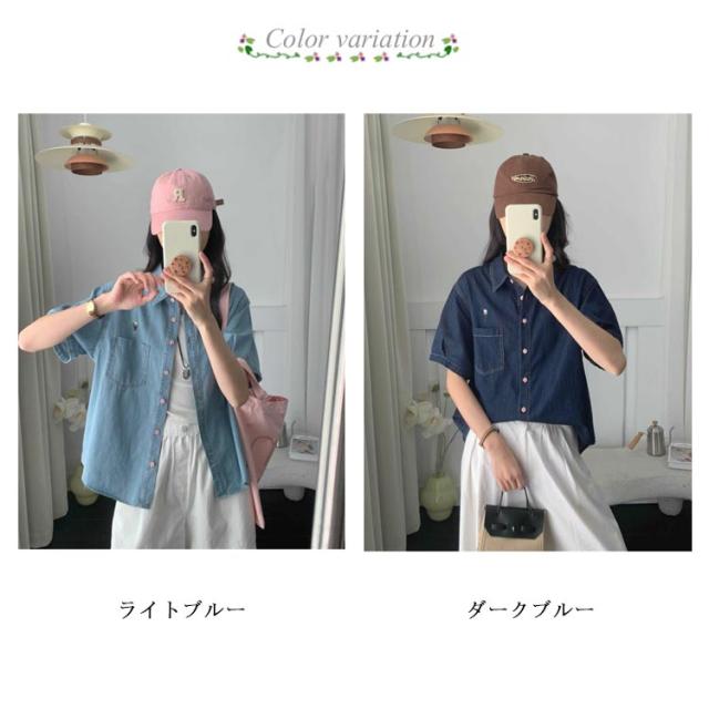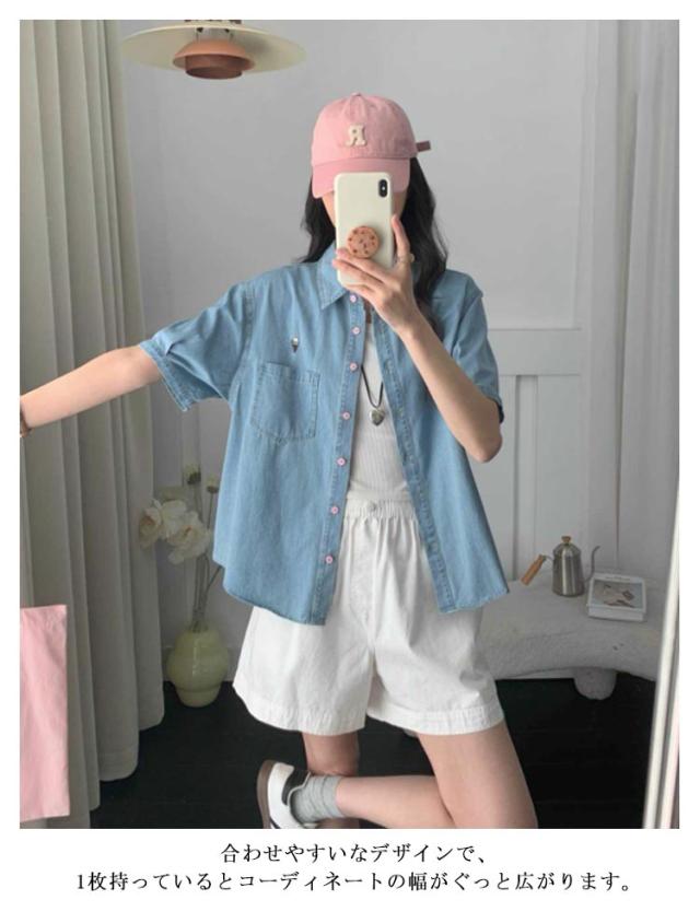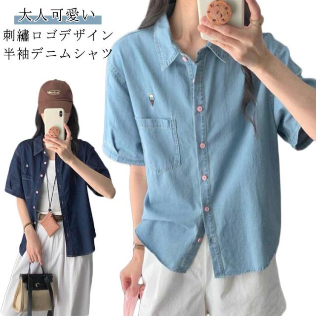 体型カバー 半袖シャツ トップス 半袖トップス 刺?ロゴ シャツ シャツブラウス 半袖 レディース ブラウス 無地 夏 ゆったり 刺?ロゴ 大人可愛い 薄手 デニムシャツ デニム 前開け チュニック カーディガン 通勤シャツ カジュアル お洒落