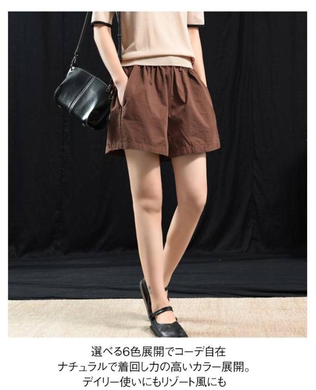 ショートパンツ ゆったり ワイドパンツ コットン 夏新作 パンツ 大きいサイズ 文芸風 ウエストゴム 夏用 ショートパンツ 涼しい ズボン 6色展開
