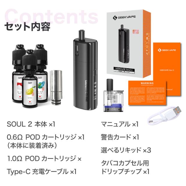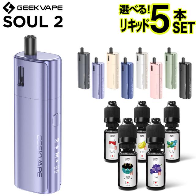 ![]() | ⇒ GEEK VAPE Soul2 (ギークべイプ ソウル ) リキッド5本セットはコチラ 選べるリキッドが5本付いたとってもおトクなセット。 |