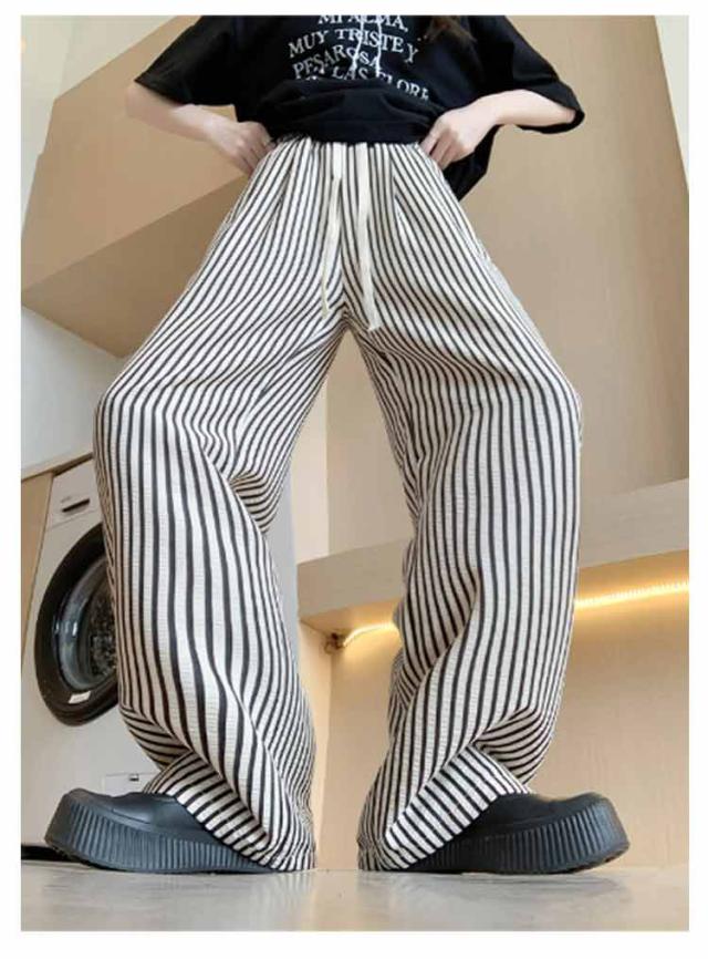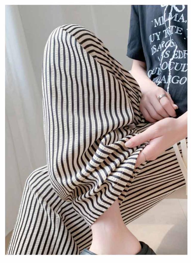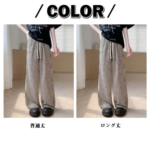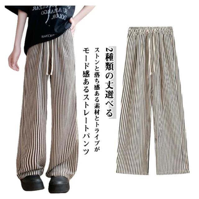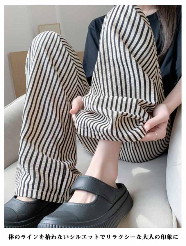 ワイドパンツ 夏 パンツ ウエストゴム レディース ロング丈 普通丈 ストライプパンツ ひんやりパンツ ストライプパンツ ワイド ロング丈 ズボン ワイドルーズ 大きいサイズ カジュアル きれいめ 薄手 着痩せ 可愛い