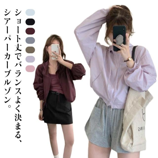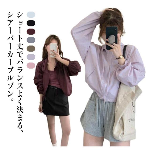 きれいめ シアー 羽織り シアーブルゾン シアー シアーパーカー 長袖 春 夏 レディース ショート丈 シースルー フード付き 透け感 シアー トップス UV対策 トップス 夏用 マウンテンパーカー 大人 カジュアル