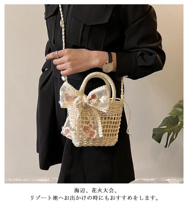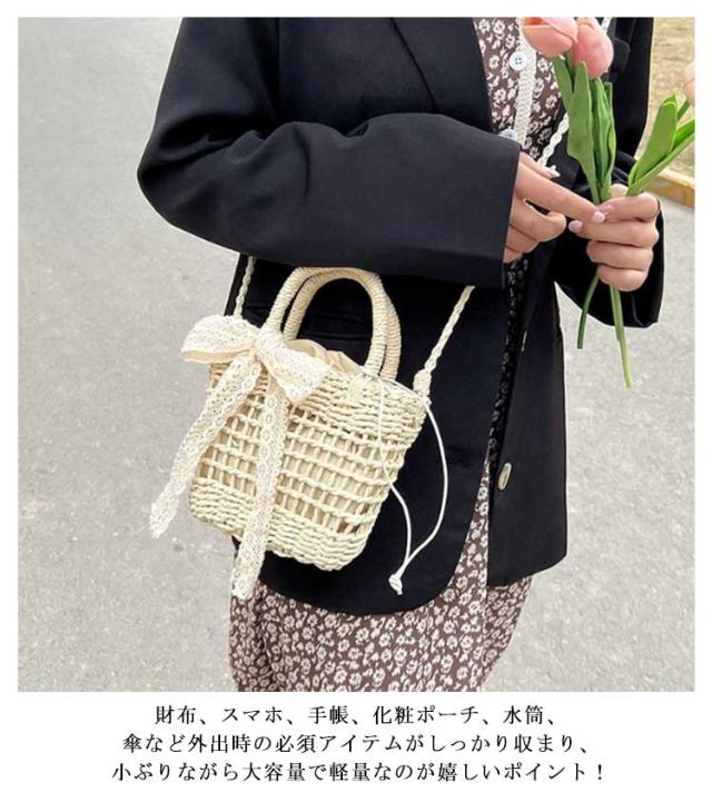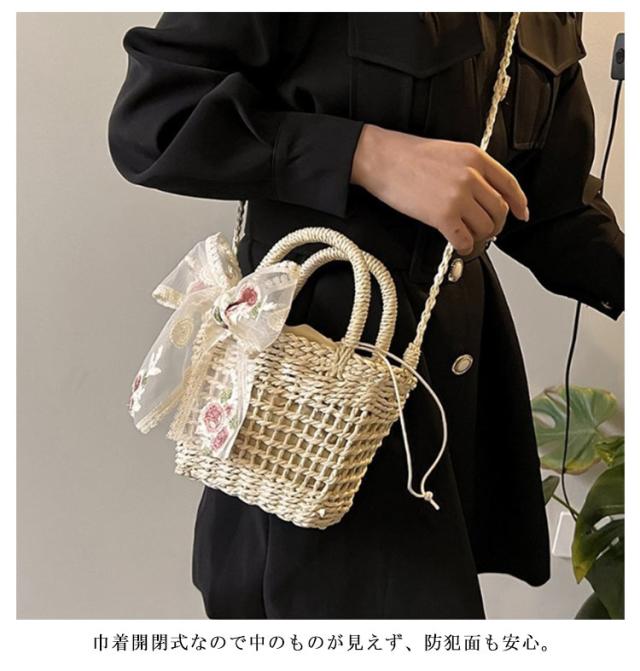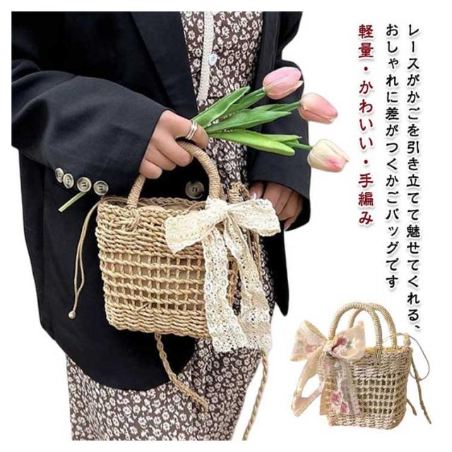 かごバッグ インナーポーチ かごバッグ レディース 浴衣バッグ ショルダーバッグ 巾着 小さめ 斜めがけ ハンドバッグ レースバッグ 大人 軽量 かわいい 手編み ショルダーバッグ ギフト プレゼント 花火大会