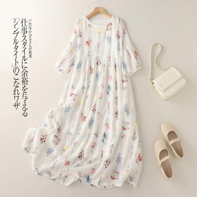 ワンピース 半袖 ボタニカル レディース 花柄ワンピ 薄手 きれいめ 20代 30代 40代 50代 着やせ 大人 上品 エレガント 清楚 大きいサイズ おしゃれ カジュアル ロングワンピース 五分袖 M L 2L 3L 体系カバー