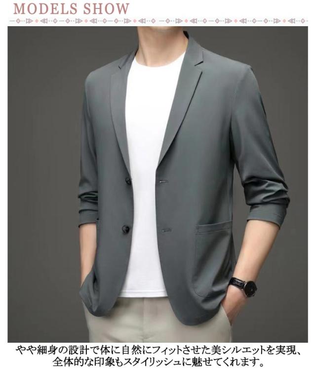 カジュアル サマージャケット アウター 極薄 薄手 春夏 スーツジャケット カーディガン メンズ アイスシルク ブレザー カジュアルジャケット 接触冷感 無地 テーラードジャケット 長袖 大きいサイズ 吸水速乾 紫外線対策 涼しい 軽量 春服 おしゃれ