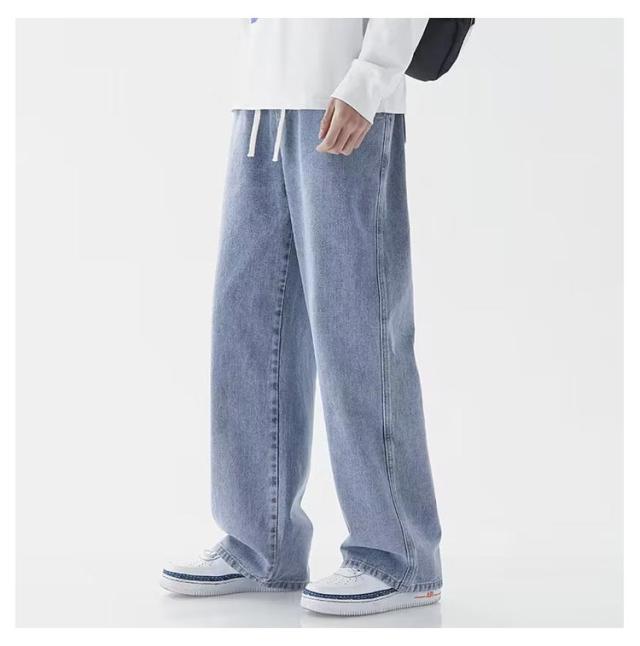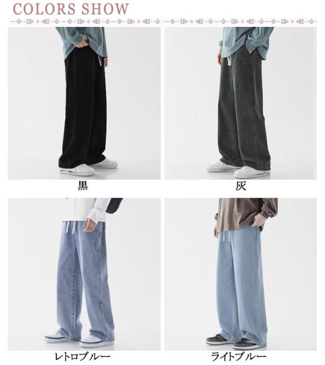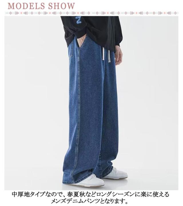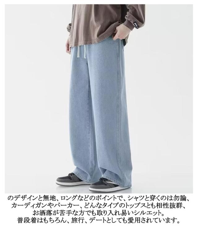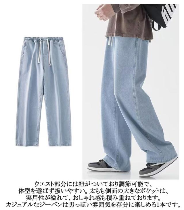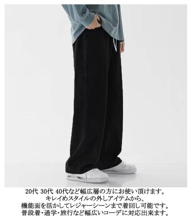 太め メンズ ワイドパンツ ゆったり デニムパンツ ワイド ゴムウエスト おしゃれ ジーパン パンツ デニム Gパン ジーンズ ストレート ボトム コットン オールシーズン バックシャーリング ブラック 全7色 父の日 父の日ギフト