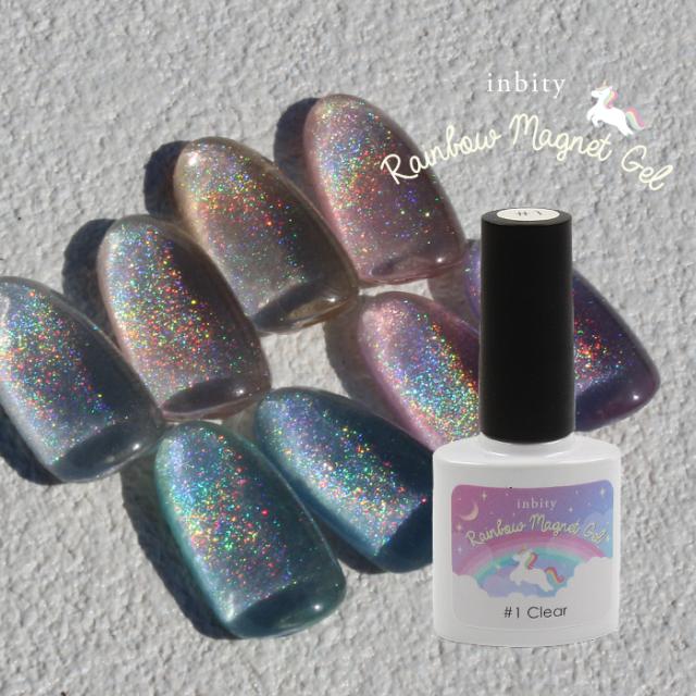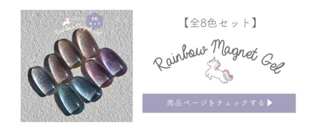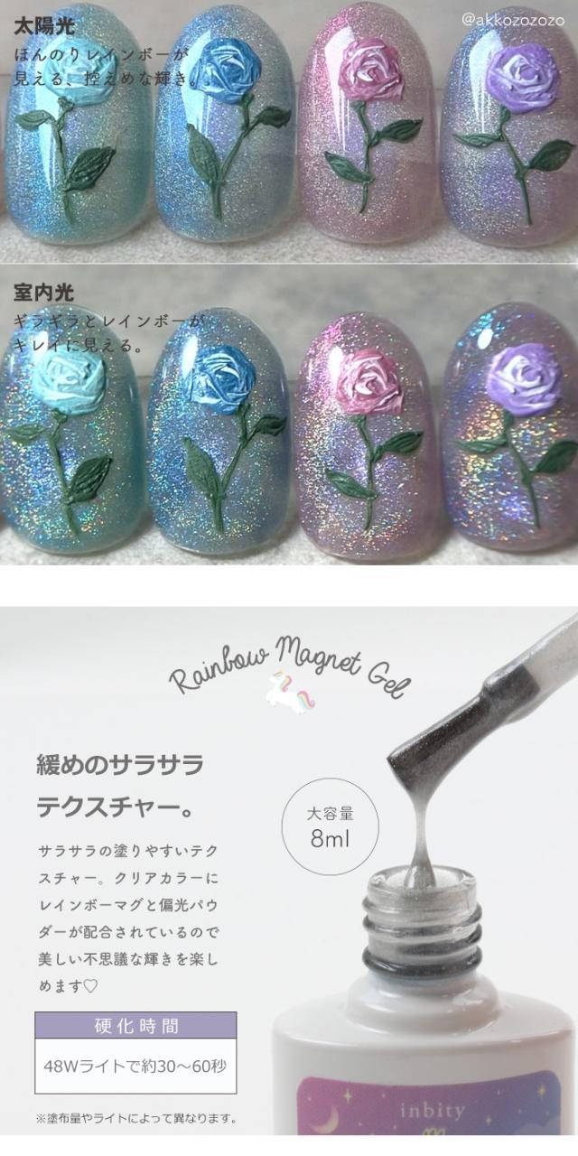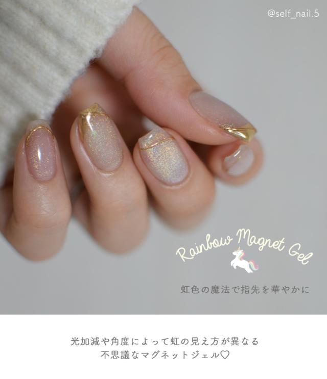 虹色のマグネットパウダーを配合したマグネットジェル♪ 光加減や角度によって虹の見え方が異なるので いろいろな雰囲気を楽しめます◎ |