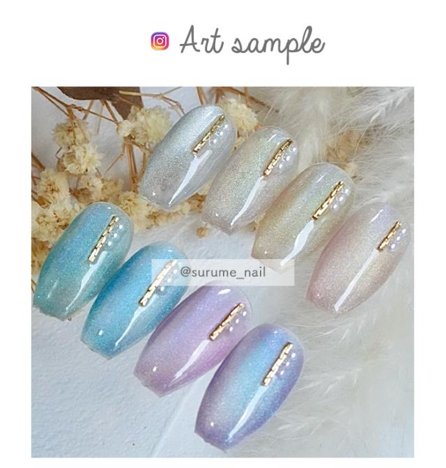 | 注意事項 | ・本製品は化粧品ではありません。ベースジェル(化粧品)の上からご使用ください。 ・ラベルシールの印刷のずれや、手作業でラベルシールを貼り付けているため、貼り付け位置にずれが生じる場合がございます。 ・当店取り扱いのUV/LEDライトに対応しています。 ・塗布量や撮影環境、モニターによって、色味の見え方が異なる場合がございます。 |
