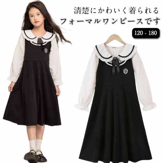 フォーマル ワンピース キッズ 子供服 フォーマル 長袖ワンピース 女の子 子供服 春 秋 白襟 ブラック ワンピース 膝下丈 入学式 発表会 結婚式 ワンピース 通園 通学 プレゼント