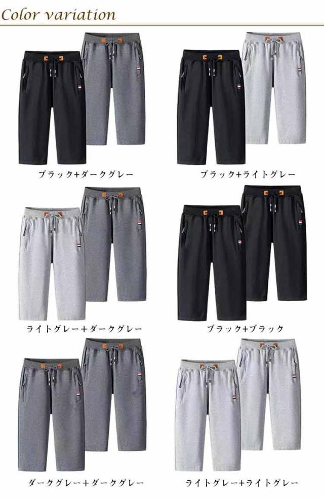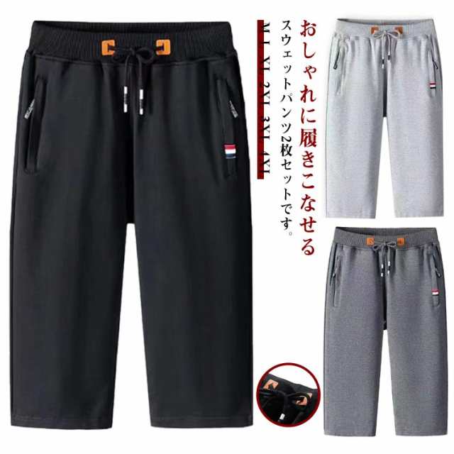 2枚セット メンズ スウェットパンツ 7分丈 夏 ジャージ メンズ 下 短パン ズボン おしゃれ クロップドパンツ 大きいサイズ 通気 ゴルフウェア ジャージパンツ ジョガーパンツ 半ズボン ショートパンツ カジュアル ウエストゴム