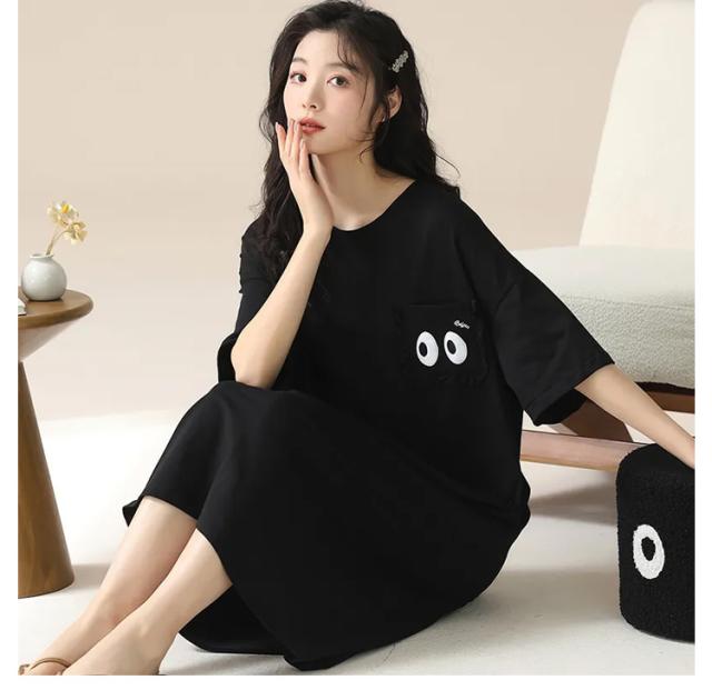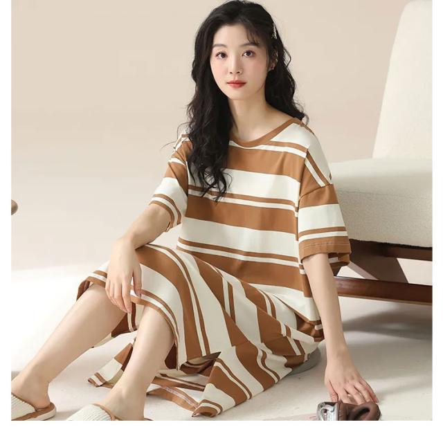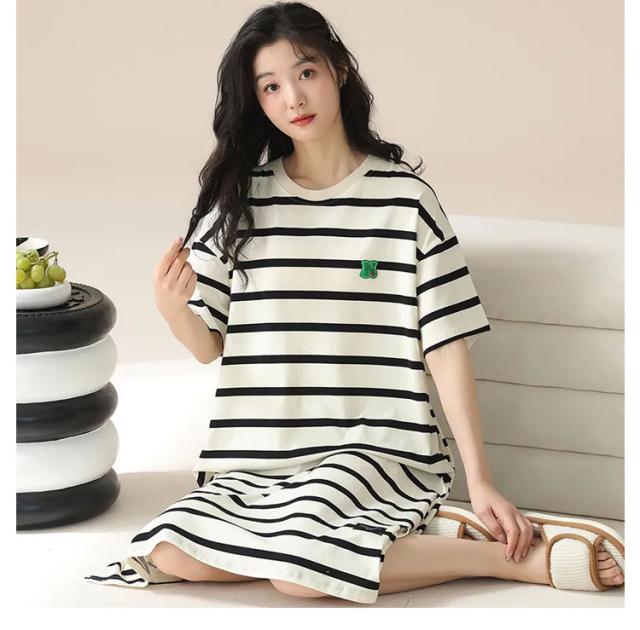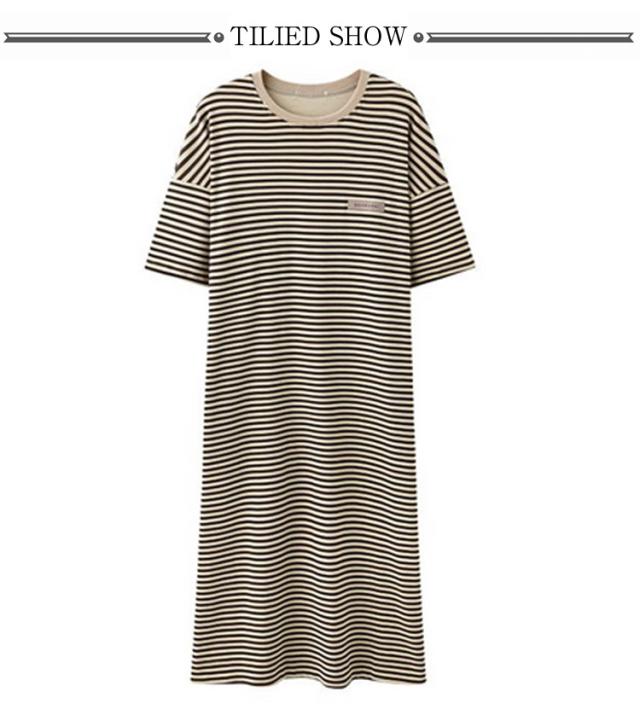 レディース ルームワンピース リラックスウェア 部屋着 パジャマ 寝巻 寝間着 半袖 ボーダー 膝下 ミモレ丈 大きいサイズ 透けない ボックスワンピ マタニティ シンプル おしゃれ クルーネック 丸首 涼感 涼しい 春夏 夏用 体型カバー 送料無料