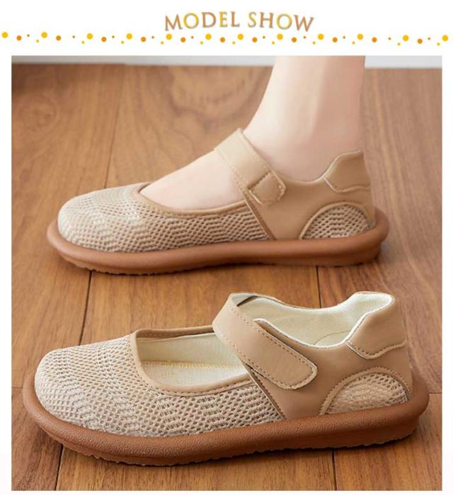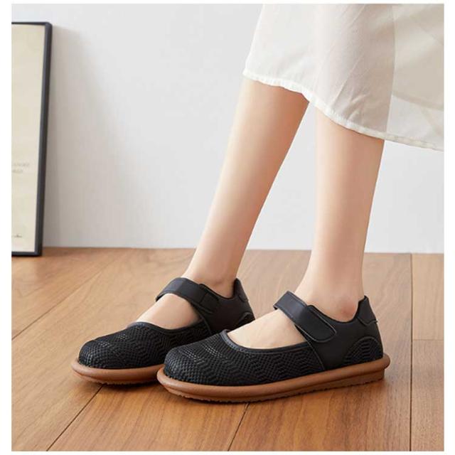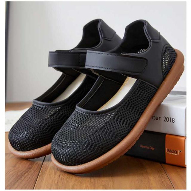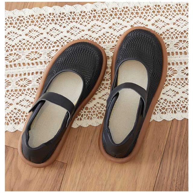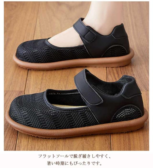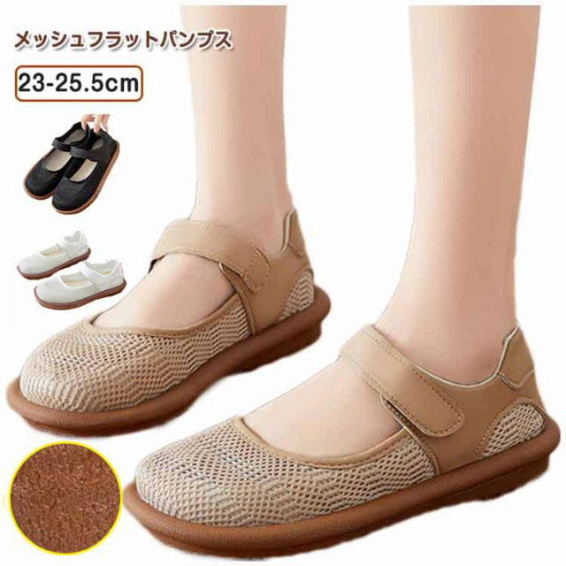 メッシュパンプス 痛くない レディース ラウンドトゥ 外反母趾 メッシュフラットパンプス マジックテープ コンフォートシューズ カジュアル ぺたんこ 涼しい 走れるパンプス ローヒール