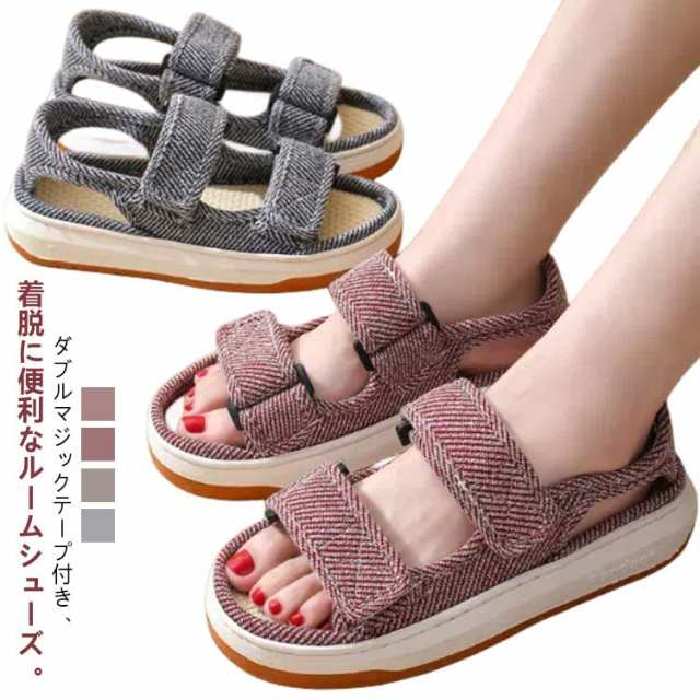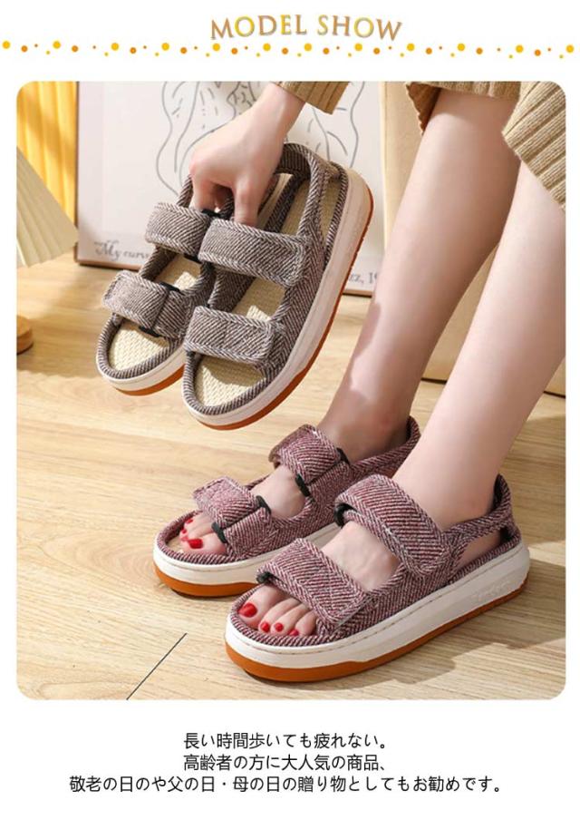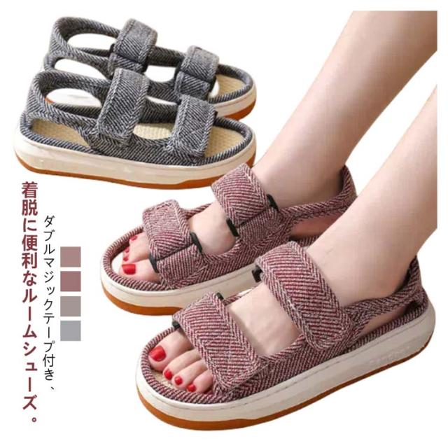 麻 介護スリッパ 夏 ダブルマジックテープ あゆみ 介護 スリッパ 介護シューズ レディース メンズ 春夏用 室内 室外 軽量 介護靴 ルームシューズ 紳士 婦人用 母 父 高齢者 敬老の日 滑り止め 痛くない コンフォートシューズ お年寄り 21.5-25cm