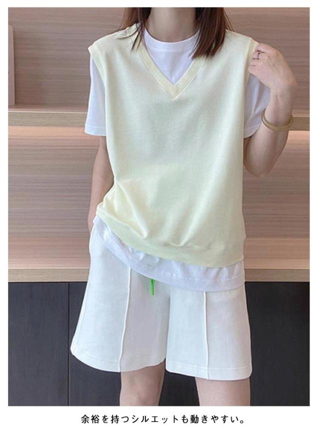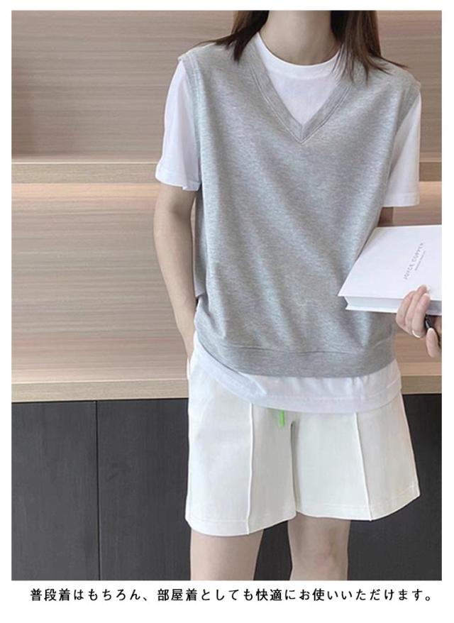 | 重ね着風の半袖tシャツ。 Vネックベストデザインはすっきりとした顔周りらし。 レイヤード風のドッキング設計はカジュアルスタイルにぴったり。 余裕を持つシルエットも動きやすい。 普段着はもちろん、部屋着としても快適にお使いいただけます。 | |