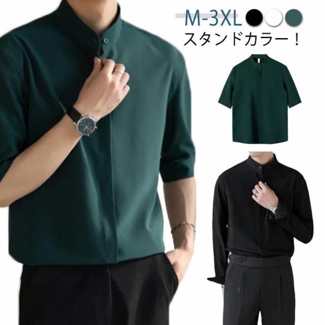 ボタンダウンシャツ メンズ ワイシャツ ボタンダウン ドレスシャツ 長袖 カジュアルシャツ 長袖ワイシャツ 五分袖 立ち襟 スタンドカラー ビジネス 結婚式 仕事 おしゃれ 春夏 男性 yシャツ 冷感 アイスシルク M L XL 2XL 3XL