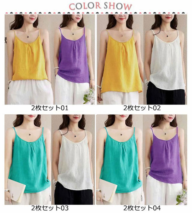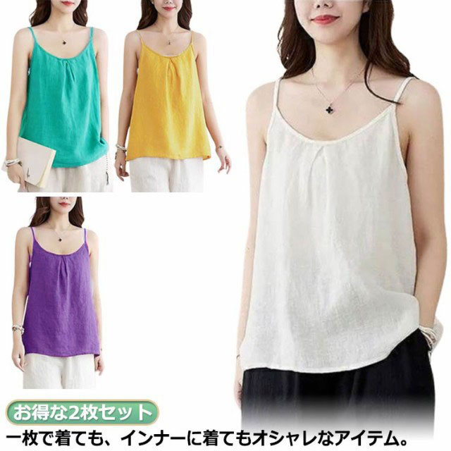 ナチュラル キャミソール カップなし 2枚セット レイヤード タンクトップ レディース レイヤードタンクトップ 綿麻 リネン キャミソール インナー タンクトップ さらさら インナー トップス通気性 サラサラ 快適 部屋着 肌着 リラックス ゆったり 体型カバー 送料無料