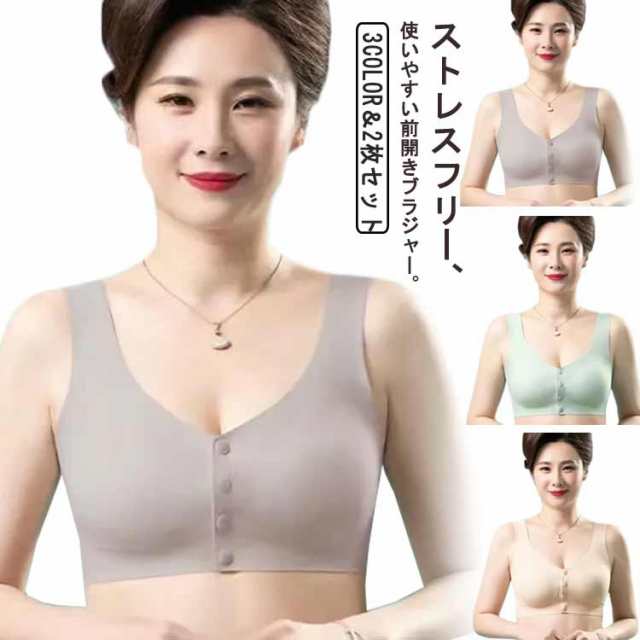 2枚セット 前開き ブラジャー 乳がん 乳ガン ブラ ノンワイヤー 前開きブラジャー 哺乳ブラ 手術後 下着 インナー ブラジャー 術後 乳癌 前あき 婦人 50代 60代 70代 母の日 プレゼント 送料無料 ミセス