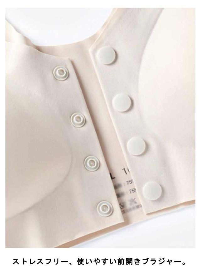| ストレスフリー、使いやすい前開きブラジャー。 ストレッチ性のよいパワーネットを挟んでいるので、締め付け感やゴムかぶれも解消されています。 背中に手を回す必要がないので、簡単にブラジャーを外すことができます。 後ろU型、シームレスでアウターに響かず、スッキリ。 幅広肩紐で食い込まないとても快適なつけ心地。 ノンワイヤーだから寝るときも苦しくない。 | |