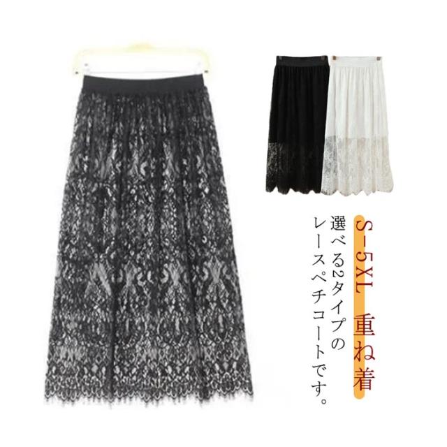 総レース ペチコート スカート レディース ぺチスカート 裾レース ワンピース インナー レイヤード 重ね着 総レース インナースカート 体型カバー ロングスカート レーススカート 和装 着物 浴衣 肌着 下着 シンプル 春 夏 S M L XL 2XL 3XL 4XL 5XL