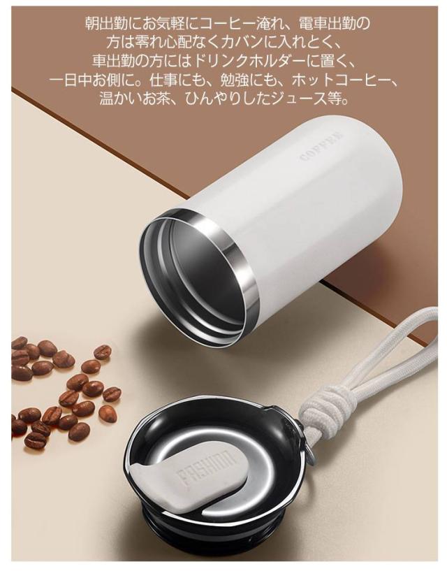 | コンビニ・カフェへの持ち込みに便利なタンブラーです。 真空断熱構造で、外からの熱を伝えず、保温・保冷効果が長く続きます。 ふた付きタイプで、ごみやほこりが入るのを防ぎます。 飲み口はカフェ風のデザインで、ふたをしたまま飲むことができます。 口当たりもよく、飲みやすい形状です。 広口で汚れ残量なしで洗い流す。 朝出勤にお気軽にコーヒー淹れ、電車出勤の方は零れ心配なくカバンに入れとく、車出勤の方にはドリンクホルダーに置く、一日中お側に。仕事にも、勉強にも、ホットコーヒー、温かいお茶、ひんやりしたジュース等。 | |