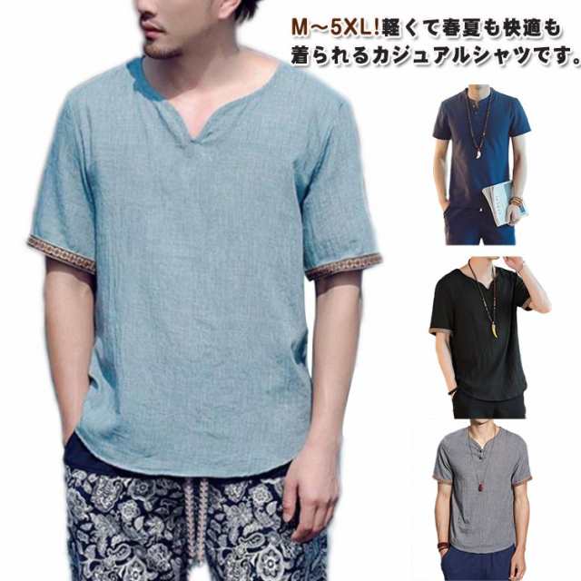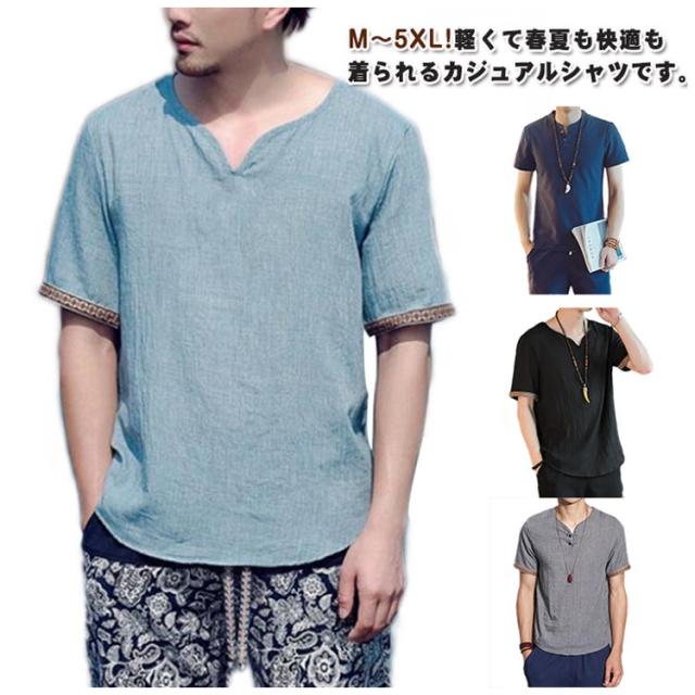 tシャツ メンズ 綿麻シャツ リネンシャツ 麻 リネン 夏 半袖 綿麻tシャツ シャツ カジュアルシャツ 春夏 ブラウス ゆったり 綿麻トップス コットンリネン 麻混シャツ 薄手 夏服 涼しい カジュアル 男性用 お兄系 無地 夏用 通勤 送料無料