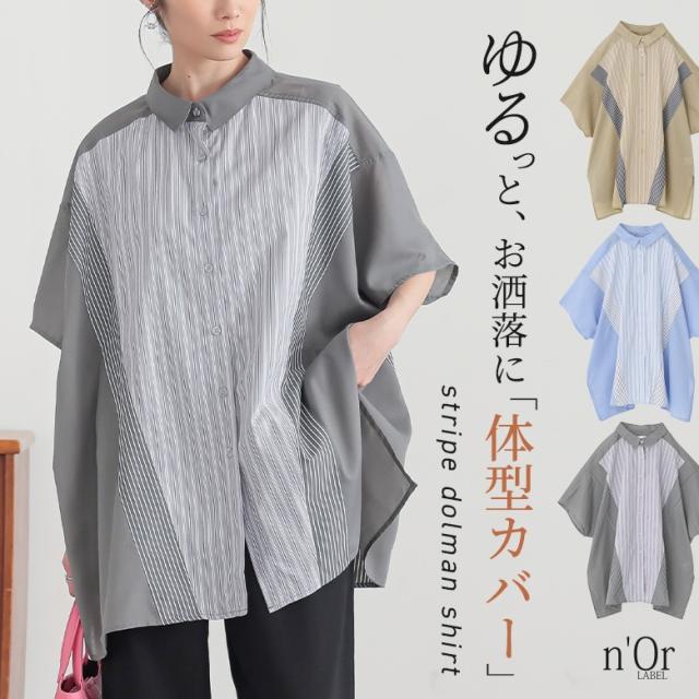 シャツ レディース トップス 半袖 ドルマンスリーブ 羽織 レイヤード 重ね着 ストライプ柄 無地 ゆったり 春 夏 【TP】 ブラウス ロングシャツ ボタンシャツ 前開きシャツ 襟付きシャツ 柄シャツ n'OrLABEL ノア—ルレーベル 大人女子 大人可愛い お洒落可愛い 大人カジュアル ベーシック ラフ オフィスカジュアル 上品 きれいめ ナチュラル ミディ丈 ミドル丈 チュニック丈 オーバーサイズ 切り替え スリット マルチストライプ おうちで洗える カジュアル シンプル モード キレカジ フェミニン ゆる 楽ちん お尻が隠れる 二の腕カバー Sサイズ Mサイズ Lサイズ LLサイズ 3Lサイズ XLサイズ フリーサイズ ぽっちゃり 体型カバー 大きいサイズ プラスサイズ 10代 20代 30代 40代 50代 60代 女子会 オフィス 通勤 通学 お買い物 お出掛け 旅行 リゾート レジャー おしゃれ お洒落 トレンド 流行 osharewalker オシャレウォーカー おしゃれうぉーかー ベージュ ブルー 青 水色 ライトブルー グレー 灰色 チャコールグレー チャコール[ID]12tn0x1