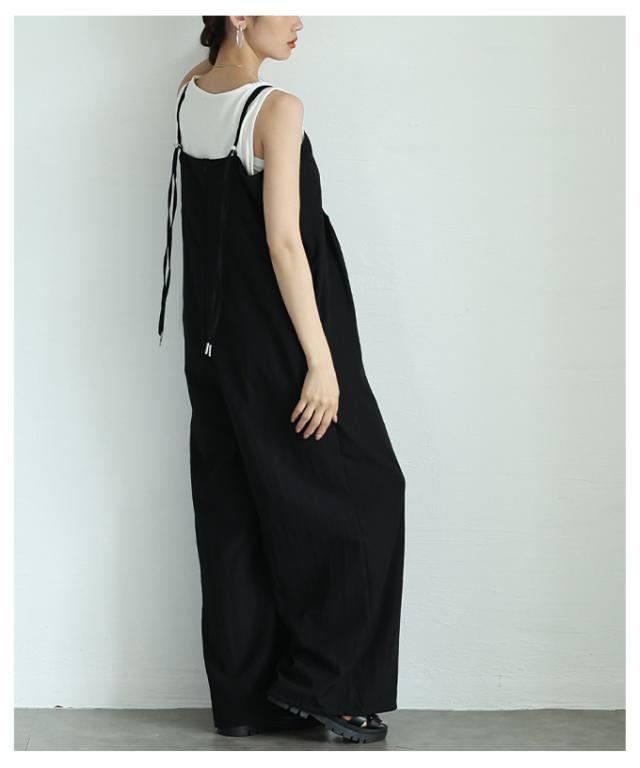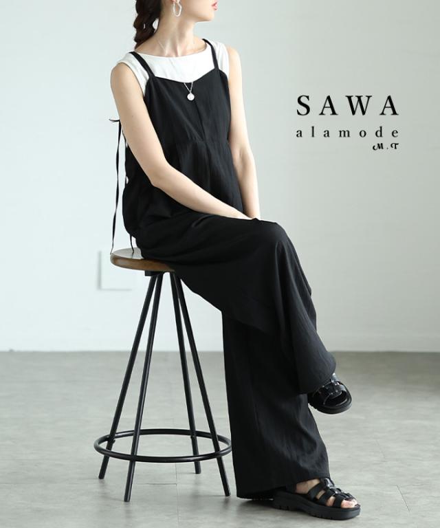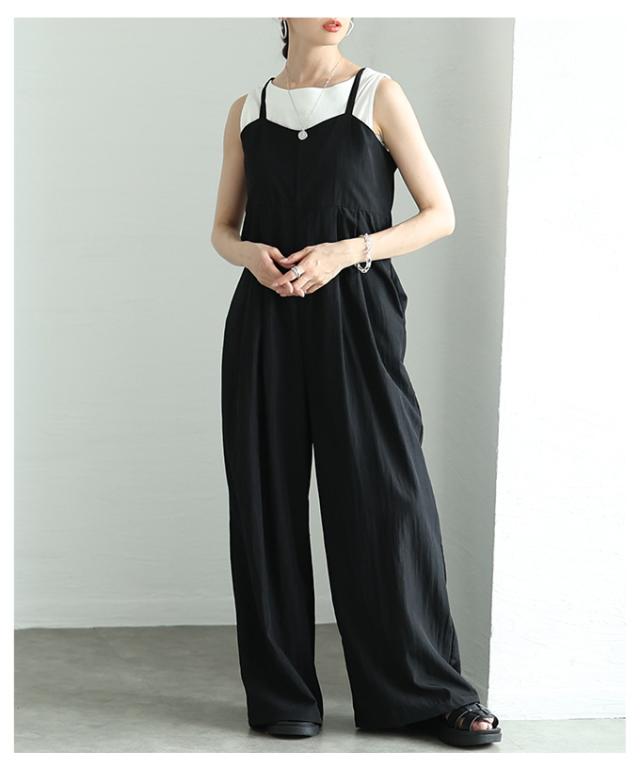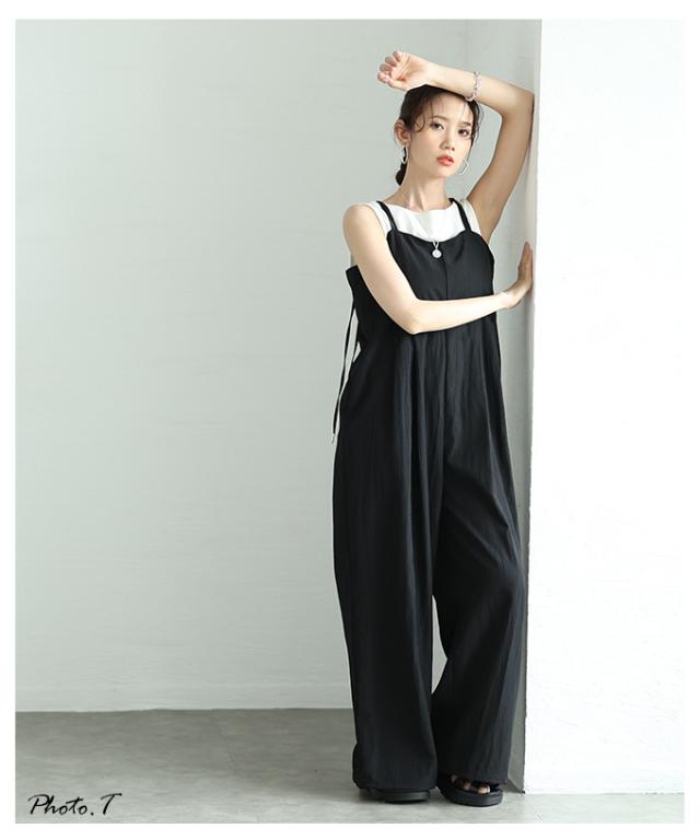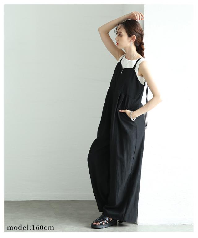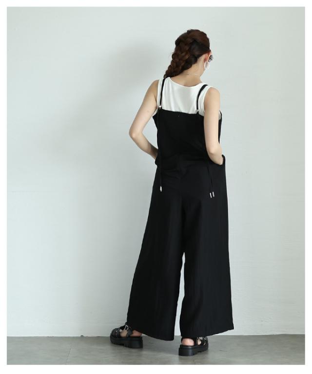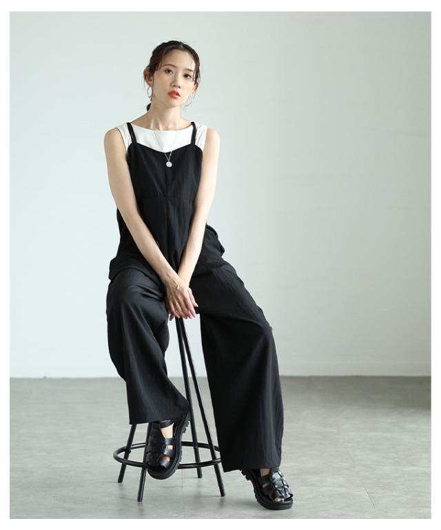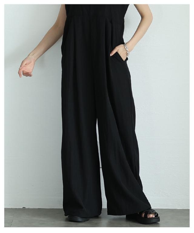 春新作 甘辛なスタイリッシュを纏うサロペットワイドパンツ レディース ファッション サロペット パンツ ワイド ノースリーブ ロング 重ね着 タック 無地 黒 30代 40代 50代 60代 サワアラモード sawaalamode otona 大人 cawaii 可愛い 洋服 かわいい服 aldt-487f3637