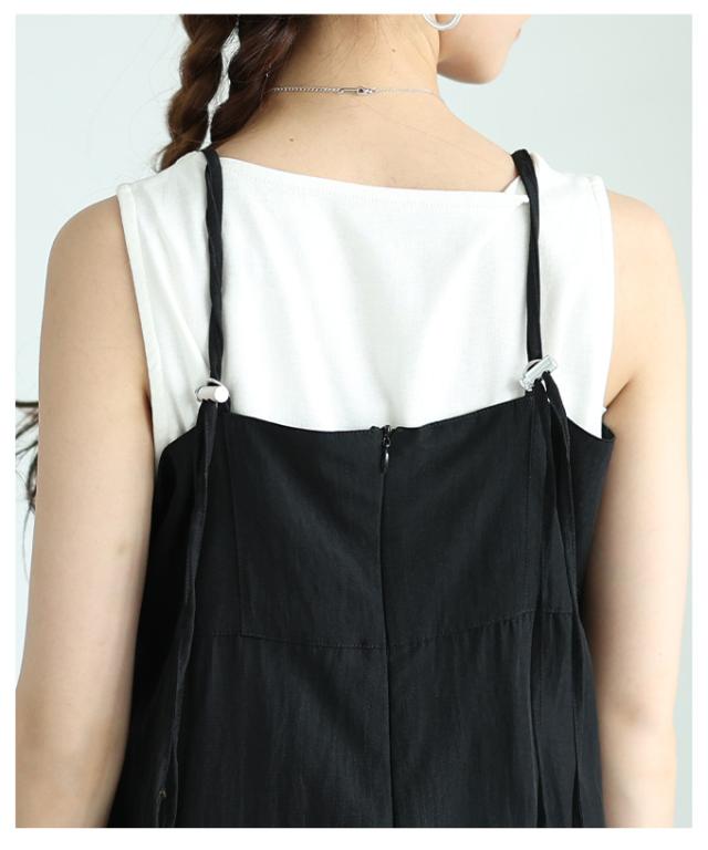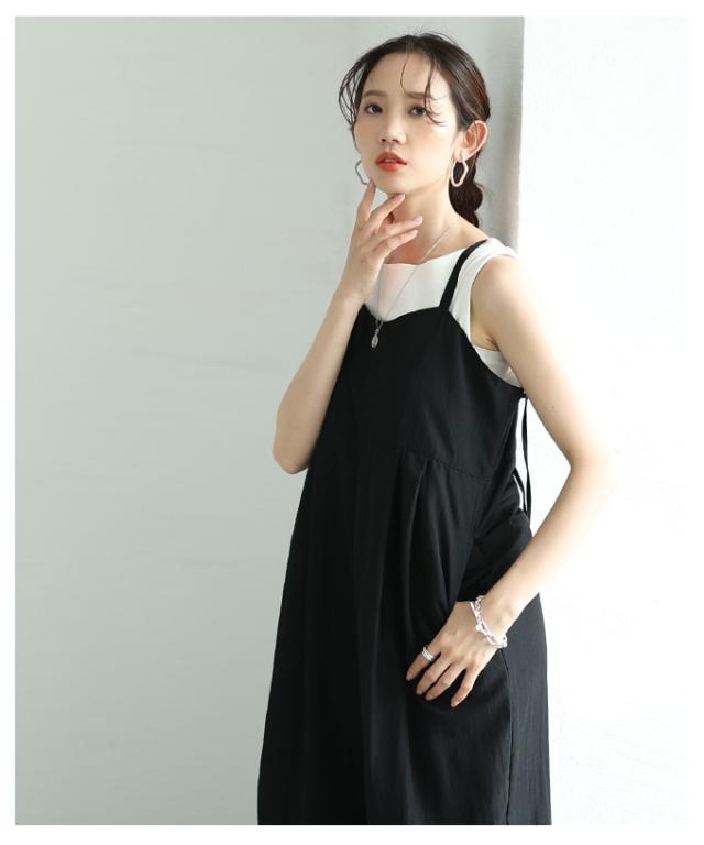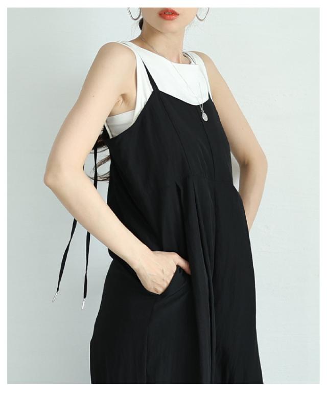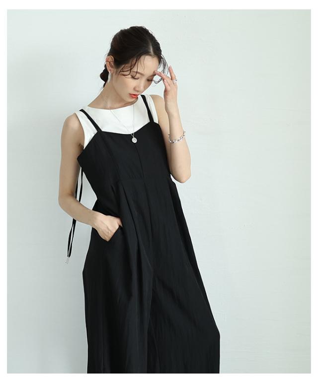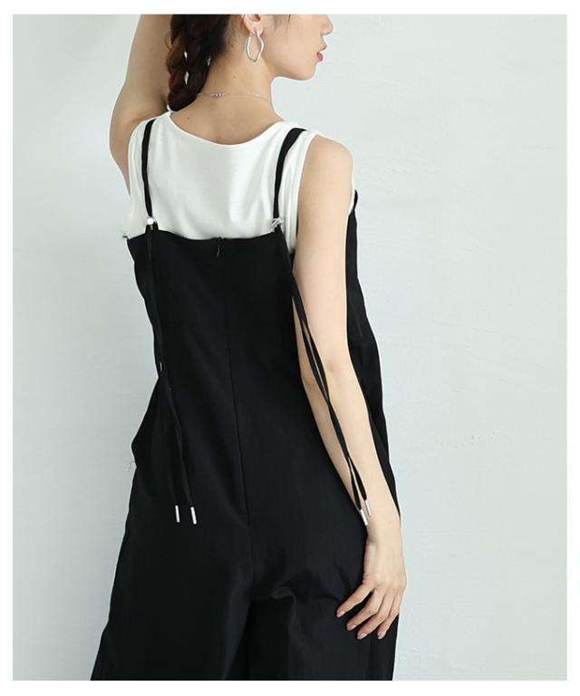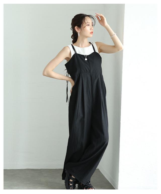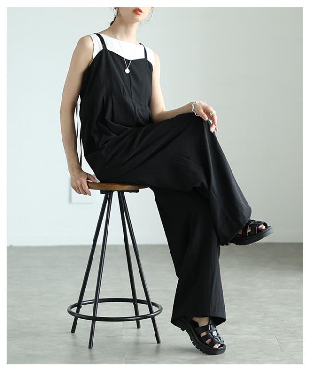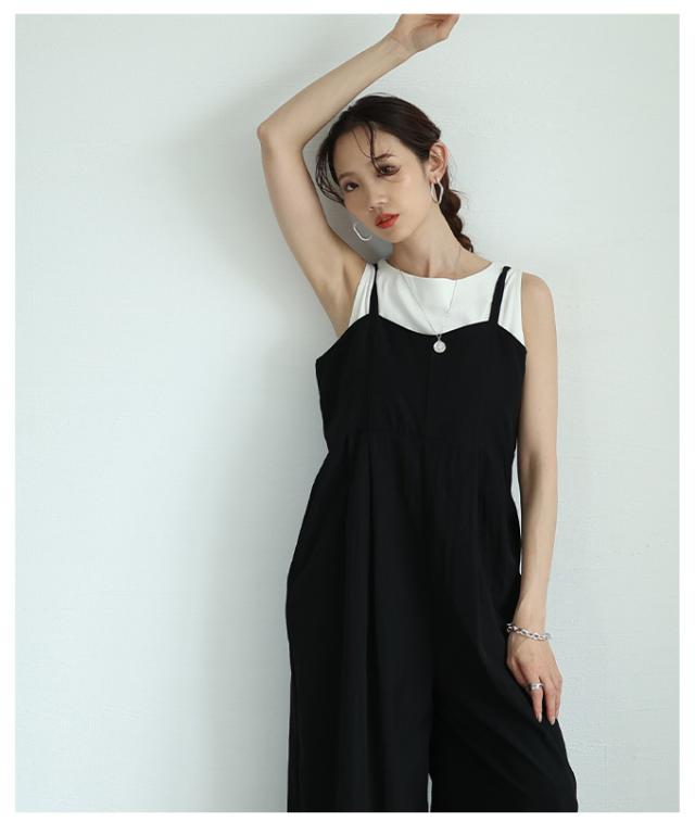 春新作 甘辛なスタイリッシュを纏うサロペットワイドパンツ レディース ファッション サロペット パンツ ワイド ノースリーブ ロング 重ね着 タック 無地 黒 30代 40代 50代 60代 サワアラモード sawaalamode otona 大人 cawaii 可愛い 洋服 かわいい服 aldt-487f3637