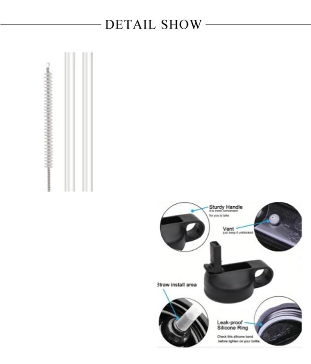 | 交換用ストロー蓋 ストロー2本+掃除ブラシ1本付 高品質の食品グレードの肥厚PP素材、ホルムアルデヒドなし、独特の臭いなし、高温耐性、衛生的で健康的。 12オンス、16オンス、18オンス、20オンス、32オンス、40オンス、64オンスサイズの複数のブランドの広口魔法瓶と互換性があります。 広口ウォーターボトルに合わせてカットできるストローが2本付属しており、付属のブラシでウォーターボトルのお手入れも簡単です。 リングのデザインにより、ボトルを持ち運ぶことができ、非常に便利で実用的です。 片手でフリックできるデザインは、運転中やジョギング中に何度も蓋を開けずに飲み物を飲むのに特に便利です。 | |