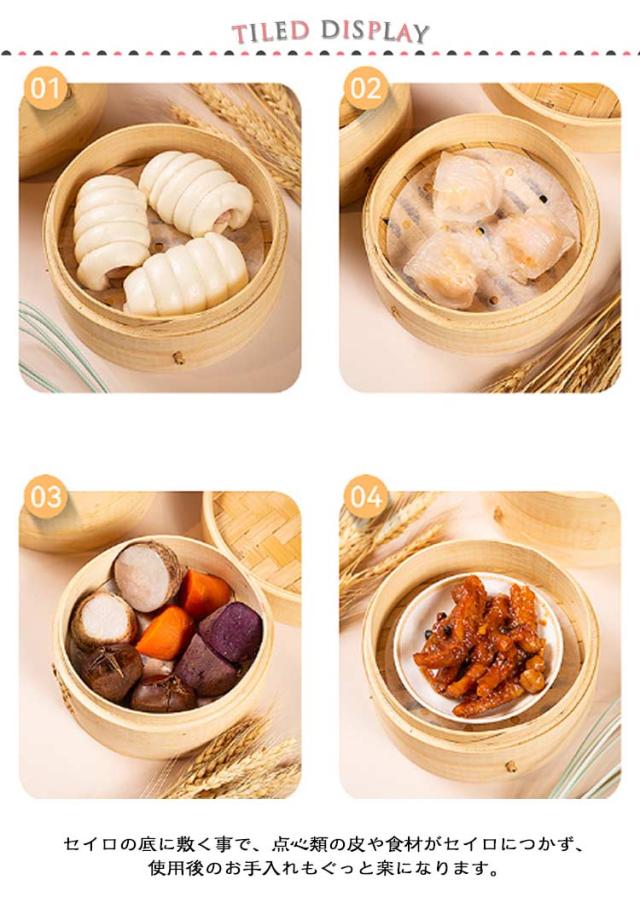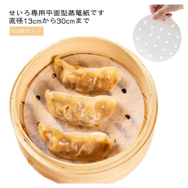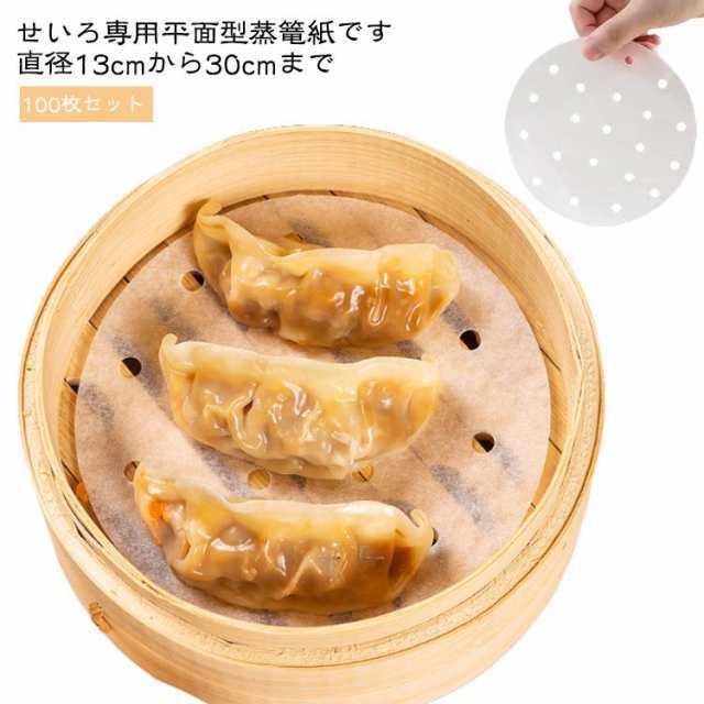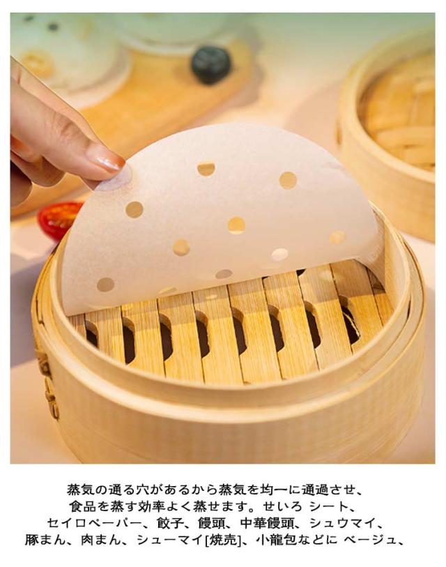 | せいろ専用平面型蒸篭紙100枚セットです 直径13cmから30cmまで セイロの底に敷く事で、点心類の皮や食材がセイロにつかず、使用後のお手入れもぐっと楽になります。 蒸気の通る穴があるから蒸気を均一に通過させ、食品を蒸す効率よく蒸せます。 せいろ シート、 セイロペーパー、餃子、饅頭、中華饅頭、シュウマイ、豚まん、肉まん、シューマイ[焼売]、小龍包などに ベージュ、 蛍光剤は不使用で、環境に優しく安全です。 食材をせいろに載せ、蓋をして湯気で蒸すだけで、誰でも手軽にヘルシーで美味しい料理を楽しめます。 | |
