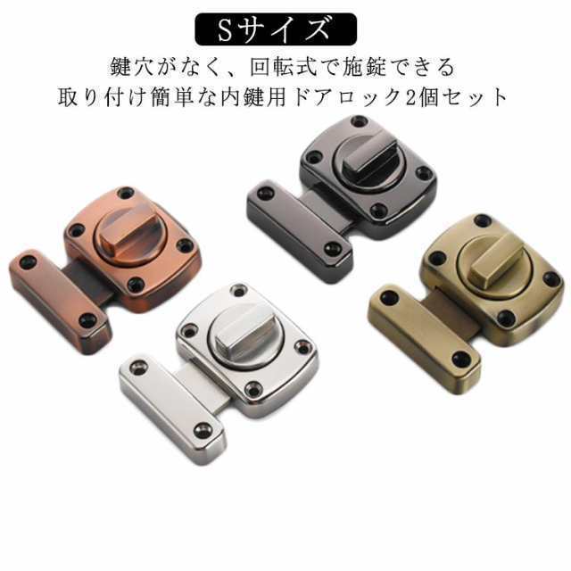 | Sサイズ 鍵穴がなく、回転式で施錠できる取り付け簡単な内鍵用ドアロック2個セット ネジで簡単取り付け!左右どちらでも使用可能! | |