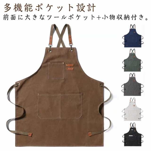 厚手 帆布 エプロン メンズ レディース 防油 防汚 防塵 通気性 耐磨耗 長めストラップ 多機能ポケット ワークウェア ツールポケット クロスバック 大容量 ユニセックス 丈夫 業務用 キッチン 作業服