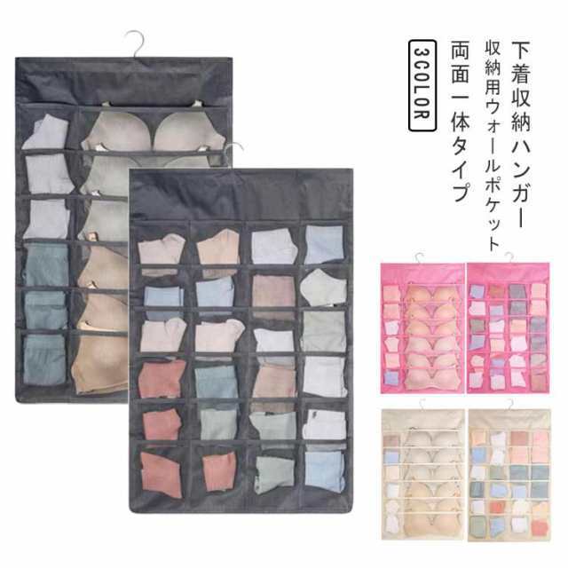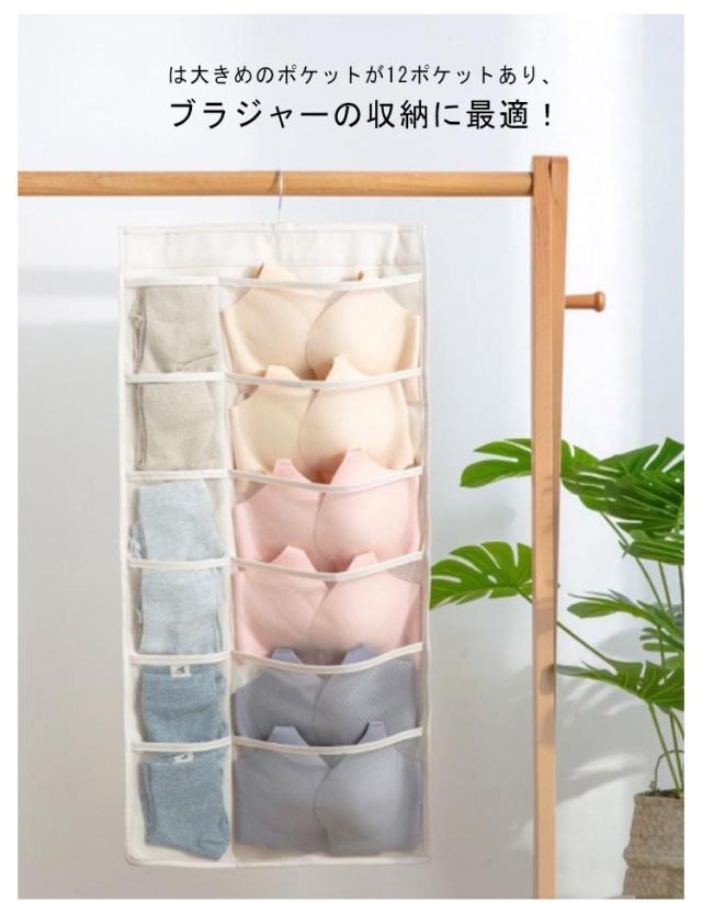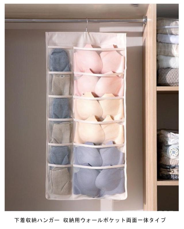 下着 収納 仕切り ウォールポケット ハンガー式 正面12ポケット 裏面24ポケット 省スペース水洗いOK 吊り下げ収納 ブラの型崩れ防止 ブラケース 衣類 収納 仕切り 壁掛け 収納ボックス 小物 大容量 寝室収納 プレゼントオススメ