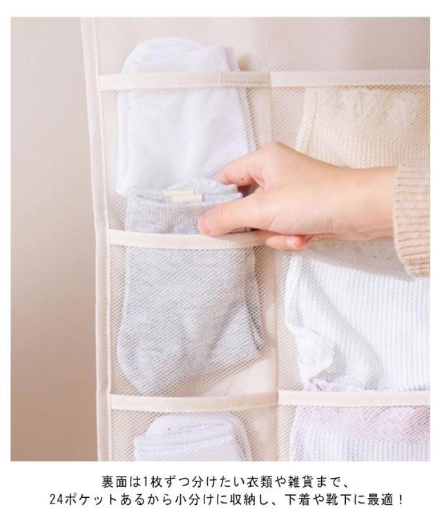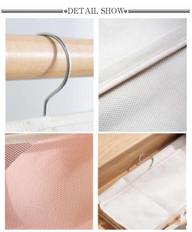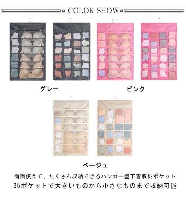 | 下着収納ハンガー 収納用ウォールポケット 両面一体タイプ 両面使えて、たくさん収納できるハンガー型下着収納ポケット 35ポケットで大きいものから小さなものまで収納可能 裏面は1枚ずつ分けたい衣類や雑貨まで、24ポケットあるから小分けに収納し、下着や靴下に最適! は大きめのポケットが12ポケットあり、ブラジャーの収納に最適! ポケットは通気性のあるメッシュを採用。湿気も気にならない。 | |