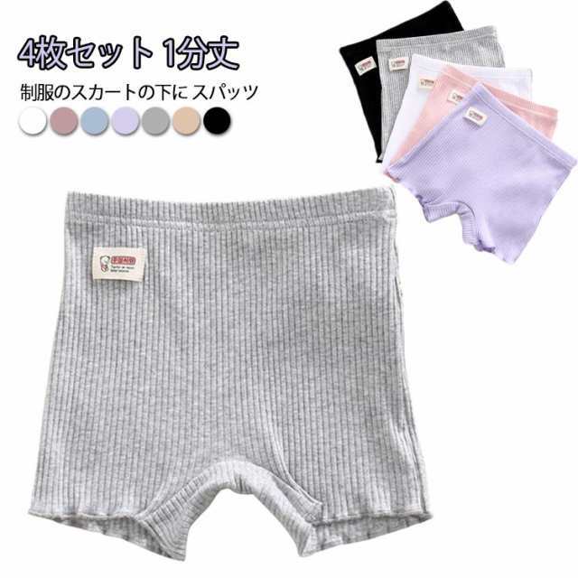 1分丈 スパッツ 4枚組 一分丈 レギンス オーバーパンツ 幼稚園 黒 1分丈スパッツ 一分丈スパッツ アンダーパンツ 綿 女の子 レディース キッズ ジュニア 見せパン 通学 通園 学生 制服 スカート フリル 裾 快適 90cm-155cm ストレッチパンツ インナーパンツ