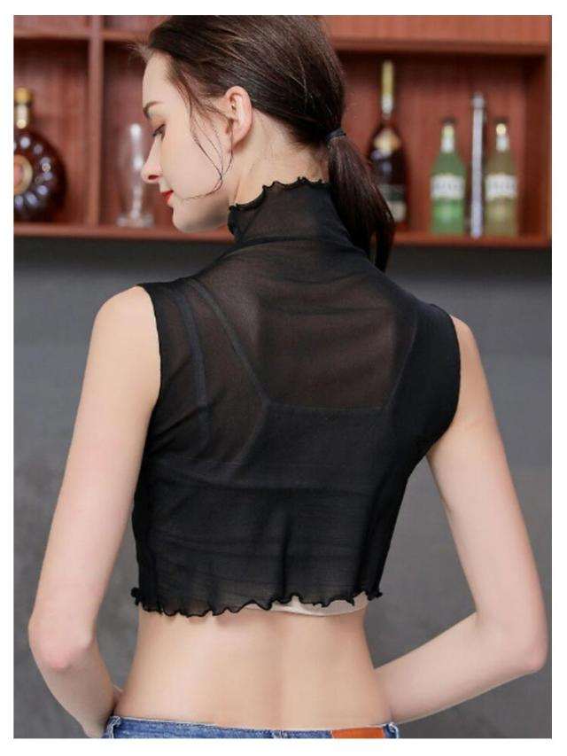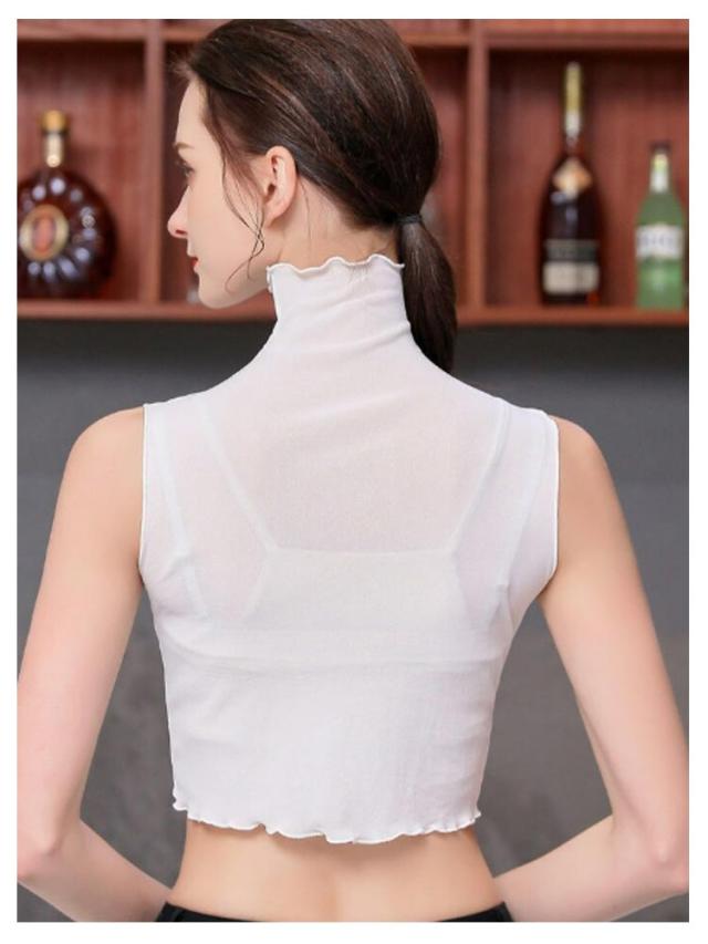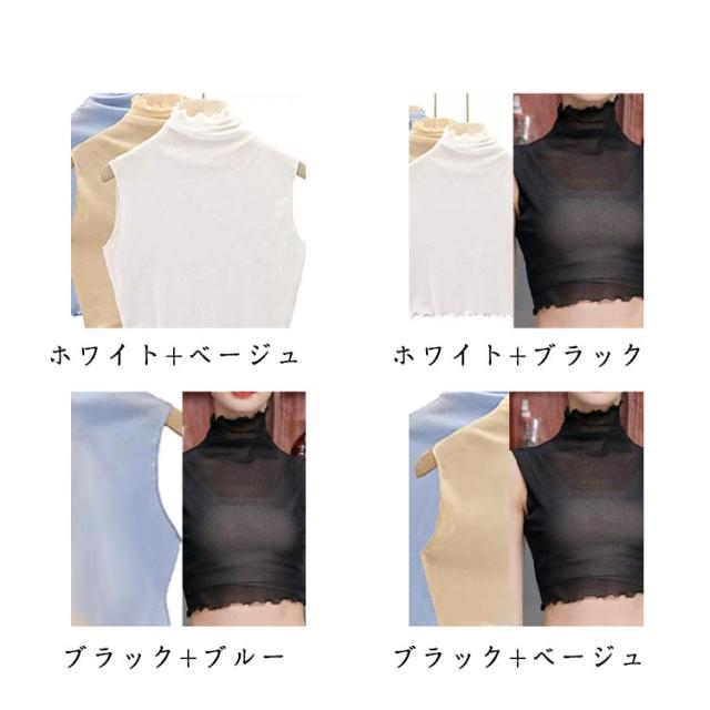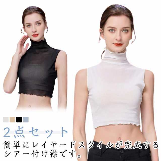 薄手 シースルー 2点セット エアコン 付け襟 メッシュ 夏 ハイネック 重ね着 つけ襟 トップス インナー 涼しい カットソー 女性 つけえり 紫外線対策 カバー ネックウォーマー レディース 冷え対策 ノースリーブ シアー レイヤード 春 通学 通勤 OL 冷房対策