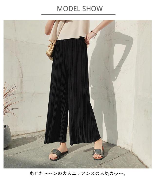 無地 プリーツワイドパンツ 着?せ プリーツパンツ 夏 ボトムス 九分丈 アウトドア イージーパンツ ストレート ゆったり ウエストゴム ハイウエスト 体型カバー 夏用 通勤 通学 プリーツワイドパンツ 大人女子 キレイめ カジュアル