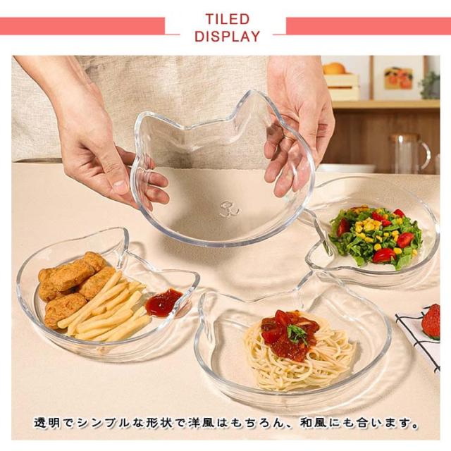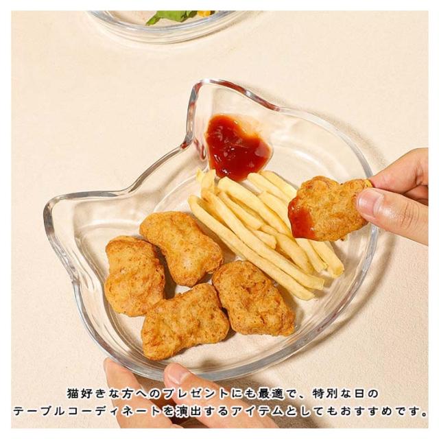 取皿 透明 2個セット 配膳 小皿 ガラス 猫型 おしゃれ Cat ランチプレート ネコ ねこ ガラス フルーツ 取り皿 トレー ガラス 菓子皿 ティートレー カフェトレー 餃子トレー お盆 豆皿 浅鉢 菓子 副菜 デザート皿 カレー プレート 食器セット ギフト プレゼント