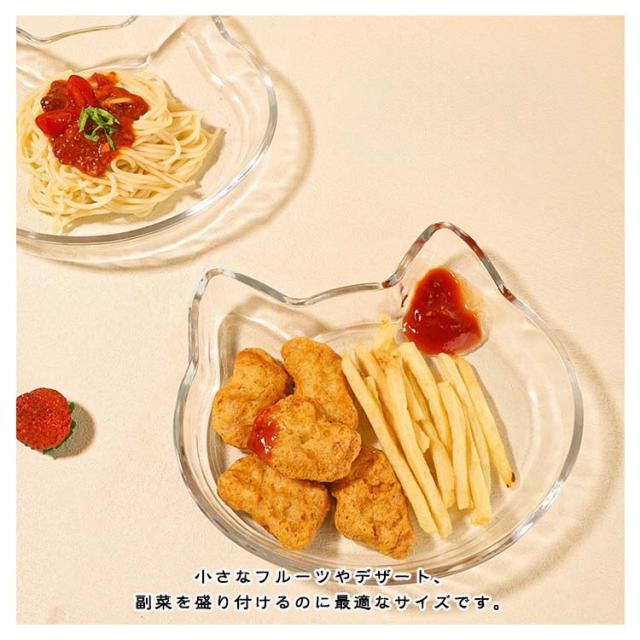 | 猫耳がついた可愛い猫の皿が登場! 透明でシンプルな形状で洋風はもちろん、和風にも合います。 小さなフルーツやデザート、副菜を盛り付けるのに最適なサイズです。 ガラス製なので色やニオイ移りも気になりません。 猫好きな方へのプレゼントにも最適で、特別な日のテーブルコーディネートを演出するアイテムとしてもおすすめです。 | |