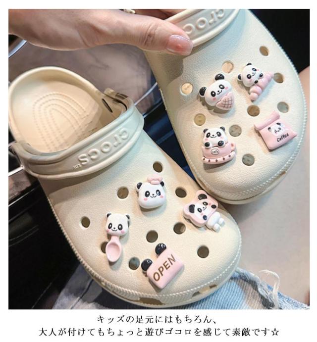 | おしゃれなパンダ柄靴飾り8点セット 取り付け、取り外しはクロックスの穴に指で押し込むだけなので簡単 キッズの足元にはもちろん、大人が付けてもちょっと遊びゴコロを感じて素敵です☆ | |
